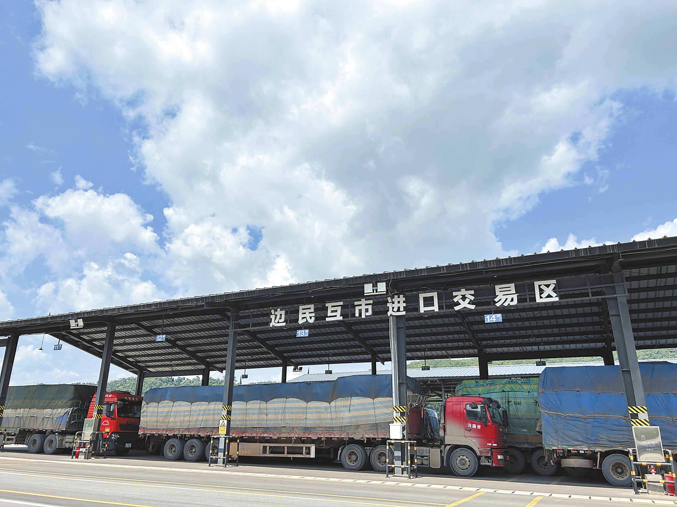 “边民互市贸易指边境地区的边民在我国陆路边境20公里以内,在经省级人民政府批准设立或者开放的贸易点,与周边国家边民所进行的每人每天8000元以内免征进口关税和进口环节增值税的商品交换活动。”磨憨口岸新边民互市场相关负责人介绍,香蕉、西瓜、鲜毛豆、鲜百香果等产品运输量大,广受欢迎。