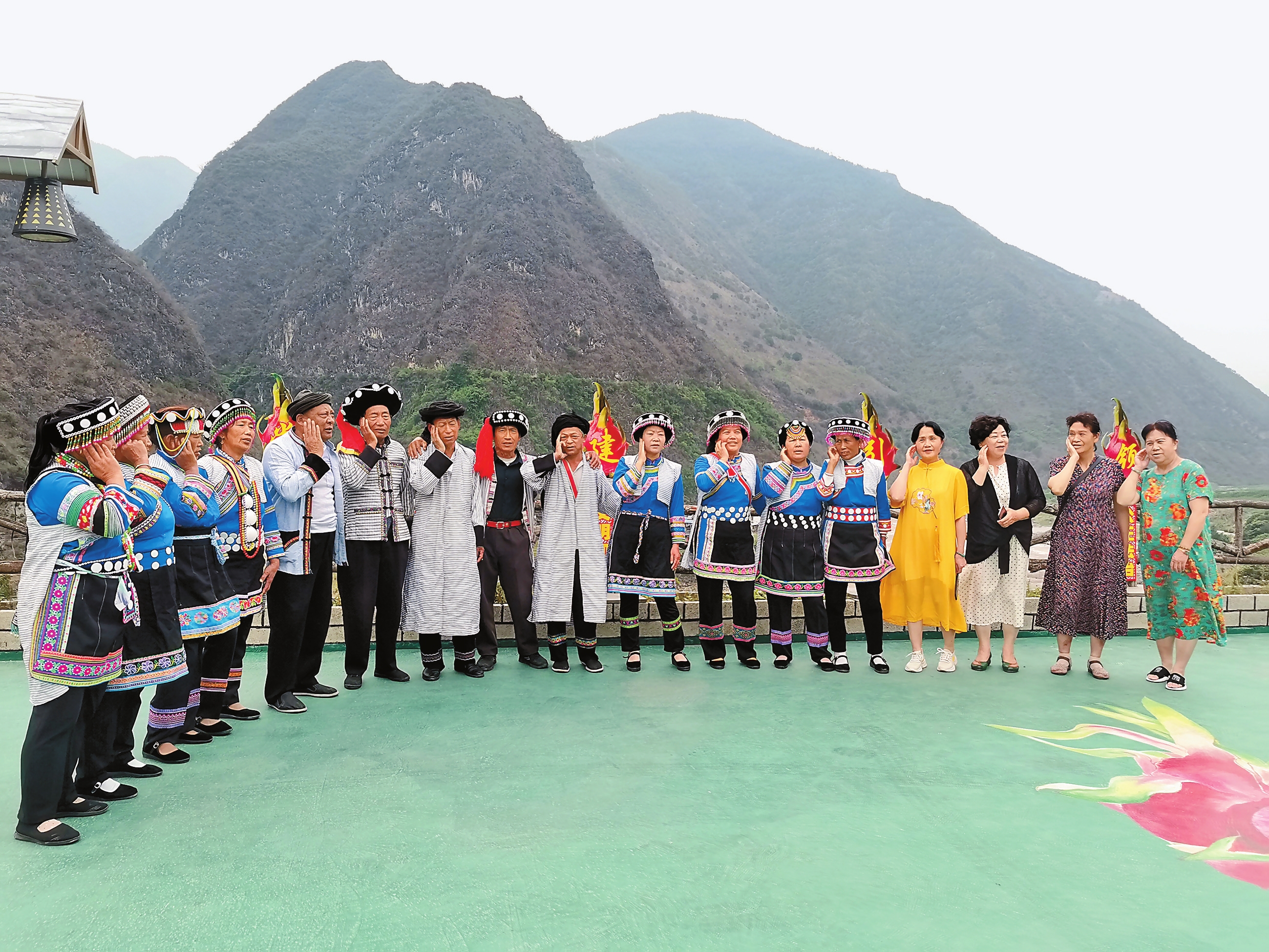 近年来,怒江傈僳族自治州依托丰富的民族文化资源,探索形成“非遗+景区”“非遗+演艺”等非遗及民族文化与旅游融合发展模式,擦亮民族特色文化,激发乡村文化创新活力,让“诗和远方”在满足人民美好生活的新期待中实现联结,推动文化繁荣,服务经济社会发展。图为游客与泸水市自扁王基村非遗展演队员一起演唱傈僳族非遗民歌“摆时”。本报记者 李寿华 摄