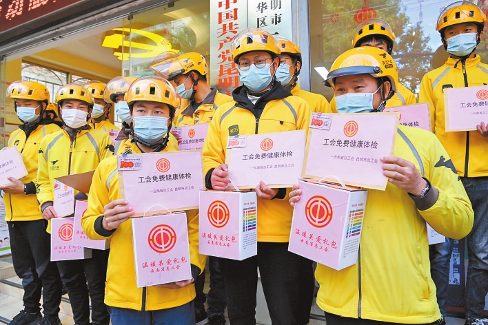 2021年以来,全省各级工会组织广泛开展以送思想文化、送身心健康、送平安保障、送温暖关爱、送工作岗位、送技能提升“六送”为主要内容的“工会进万家·新就业形态劳动者温暖行动”服务月活动,组织新就业形态劳动者参加疗休养和文体活动,为他们免费提供健康体检和电子阅读卡等。