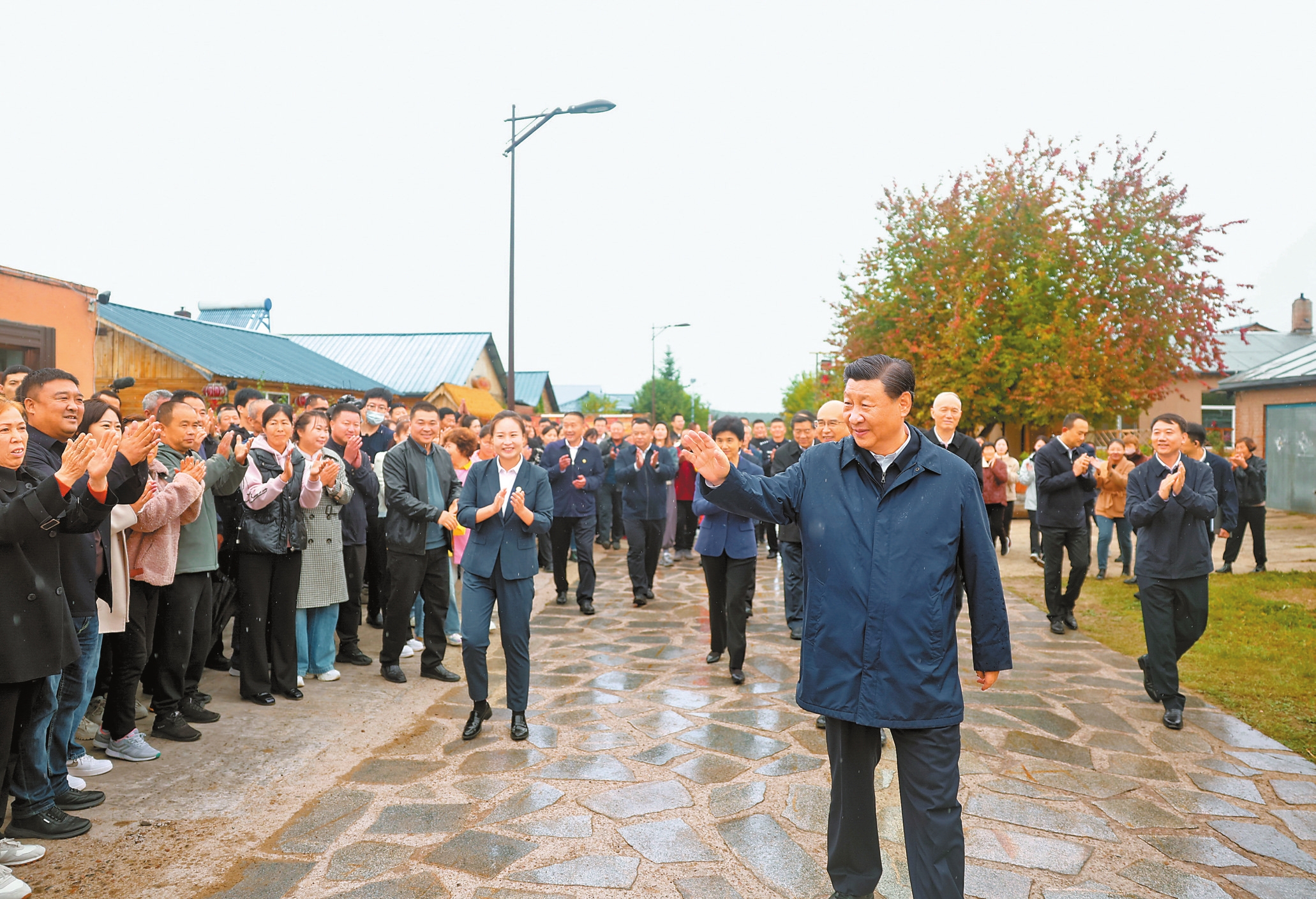 9月6日至8日,中共中央总书记、国家主席、中央军委主席习近平在黑龙江考察。这是6日下午,习近平在大兴安岭地区漠河市北极村考察时,向当地群众挥手致意。新华社记者 鞠鹏 摄