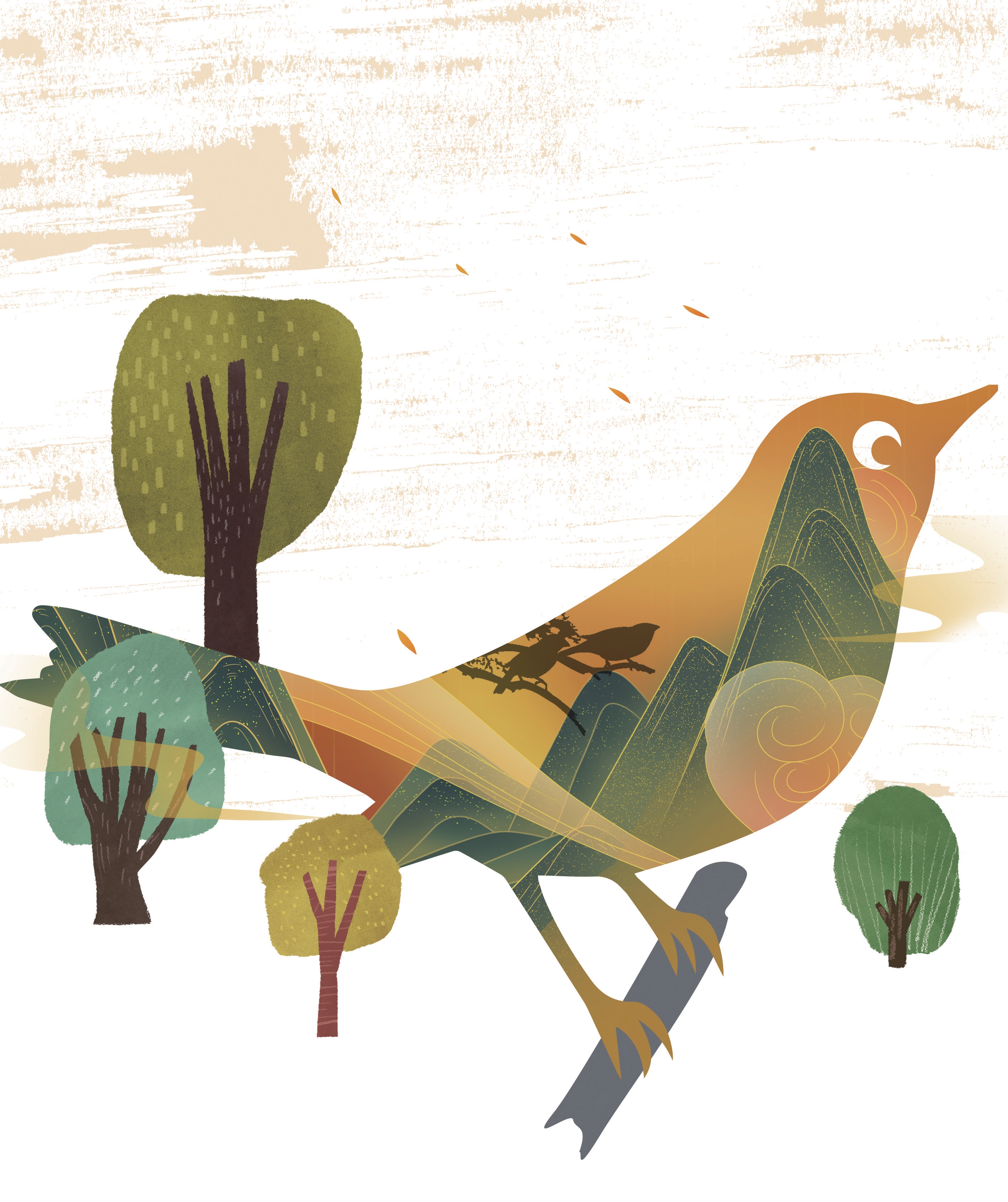 状元及第的大诗人王维,参禅悟理,学庄信道,精通诗、书、画、音乐,有“诗佛”之称。他在大唐社会的自然生态里,倾听鸟声啼唱。或许,他的思维瞬间转换,又赶赴“竹喧归浣女”的艳遇境界去了。