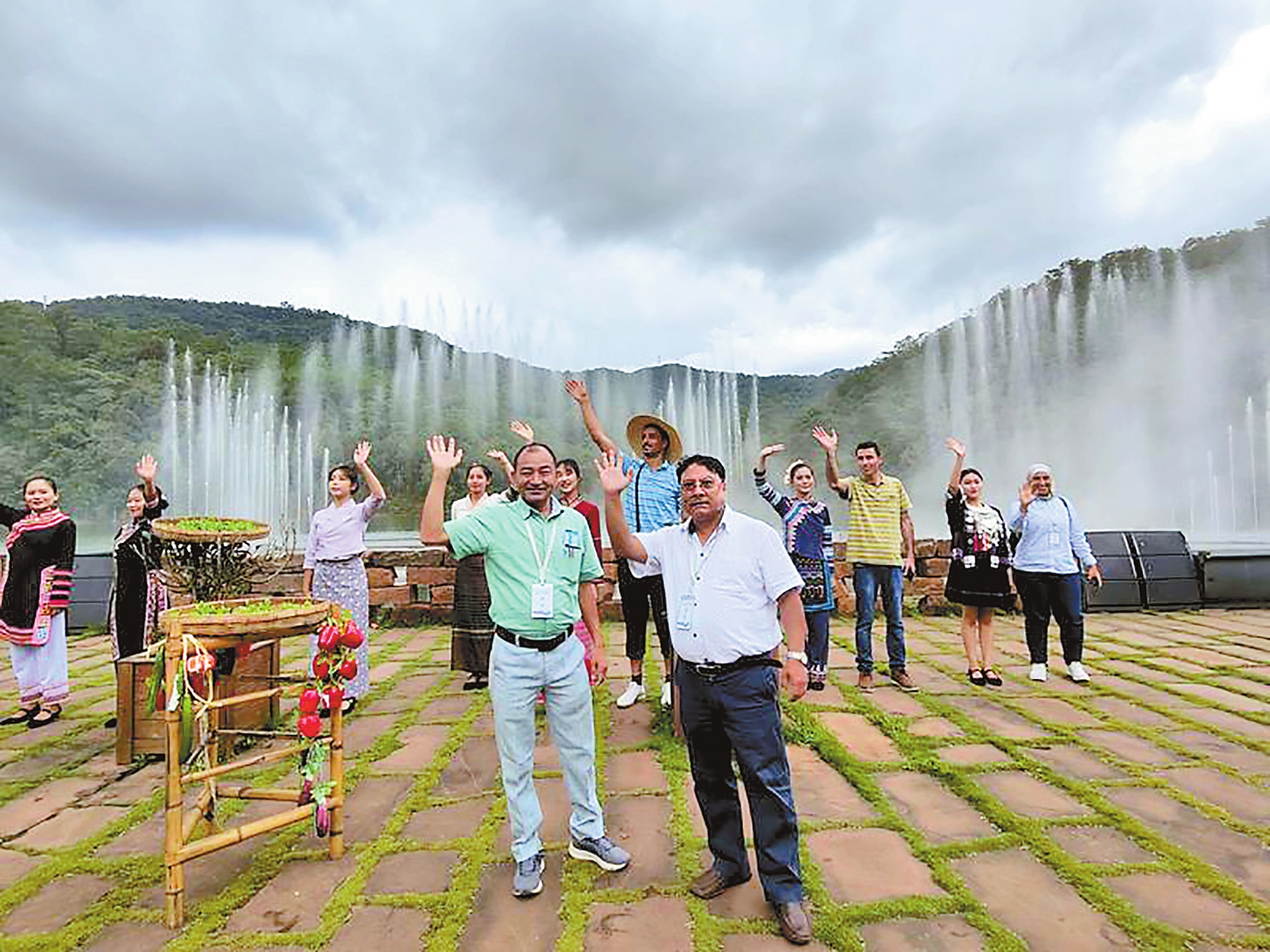 之后,外国记者们前往思茅区倚象镇营盘山中华普洱茶博览苑采风。清晨,茶园内云雾缭绕,远山若隐若现,近处的台地茶层层交叠。