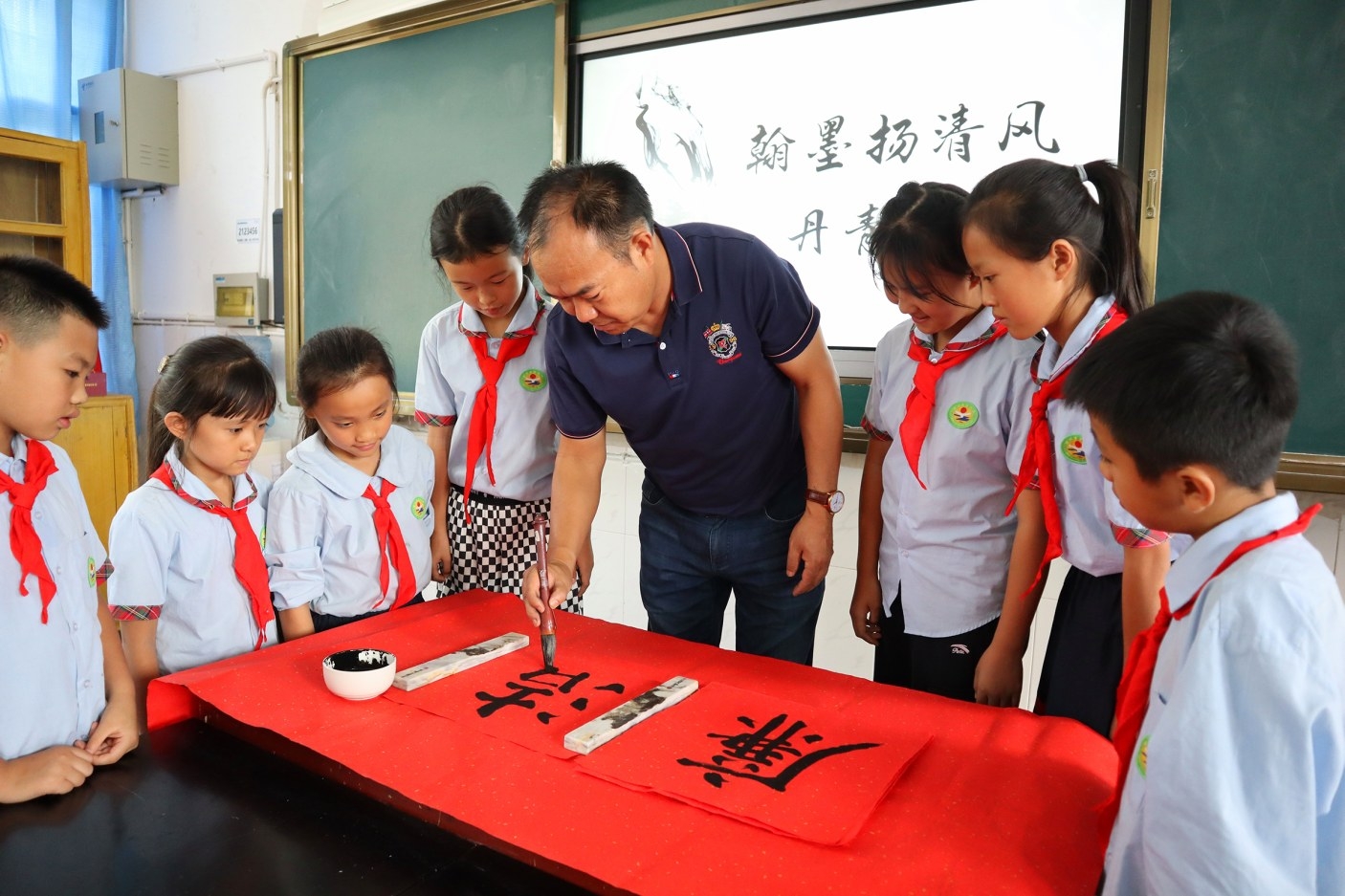 教师节前夕,镇沅彝族哈尼族拉祜族自治县直属小学特色课上,老师给孩子们上了一堂“翰墨扬清风 丹青颂廉韵”的书法课,培养孩子们知荣辱、明是非的良好品德,同时也提醒广大教师廉洁过节。图为老师在教孩子们书写“廉洁”二字。