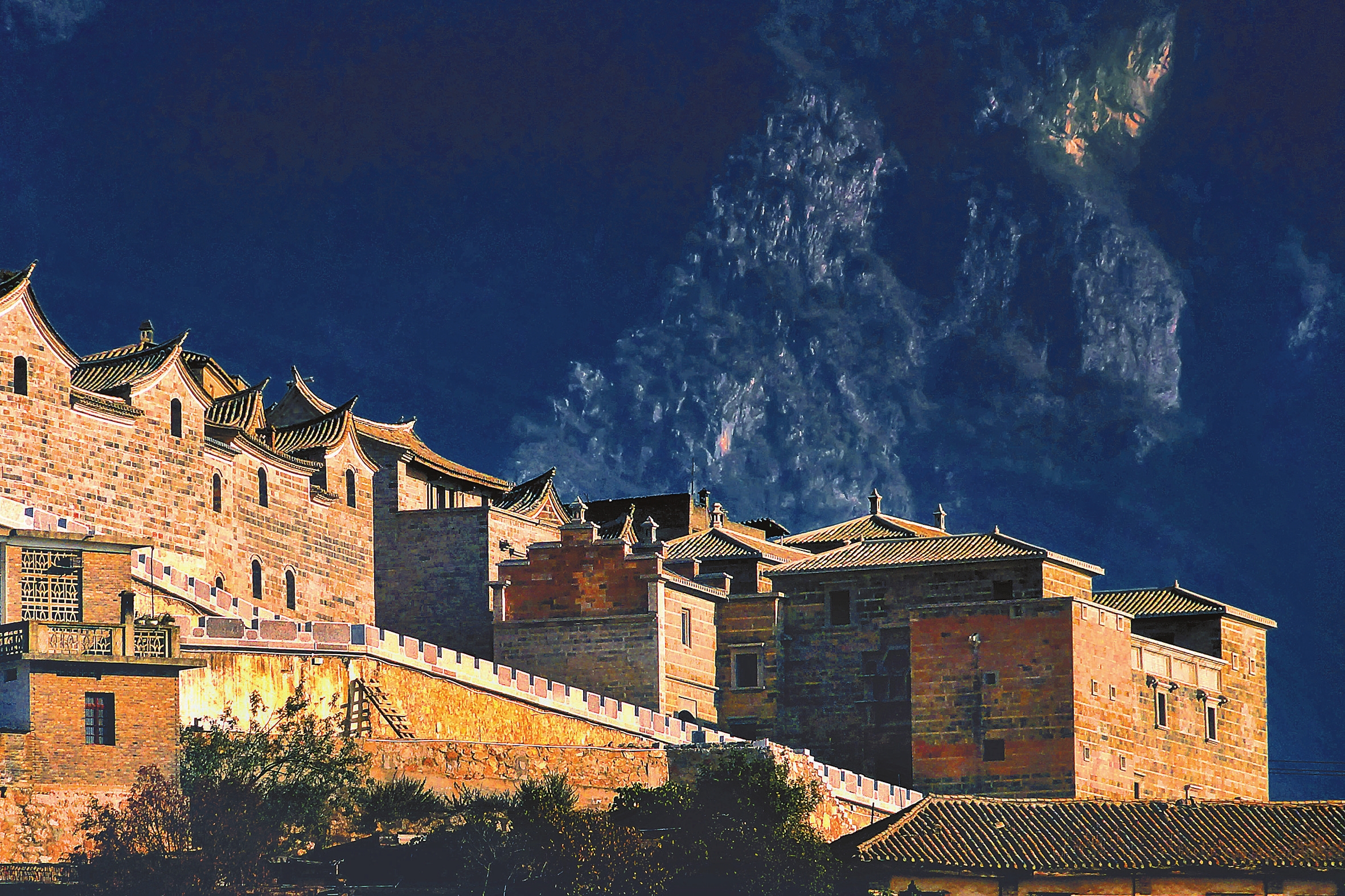 登临楼顶远眺,红河县东部群山和波涛滚滚的红河峡谷一览无遗。历经世纪风霜和战火洗礼,迤萨马帮的驼铃声虽已远去,但这些古堡式楼房并未湮没在历史的长河里,仍然每天在迎接红河谷的第一缕霞光,讲述着红河侨乡马帮人敢为人先、自强不息的故事。