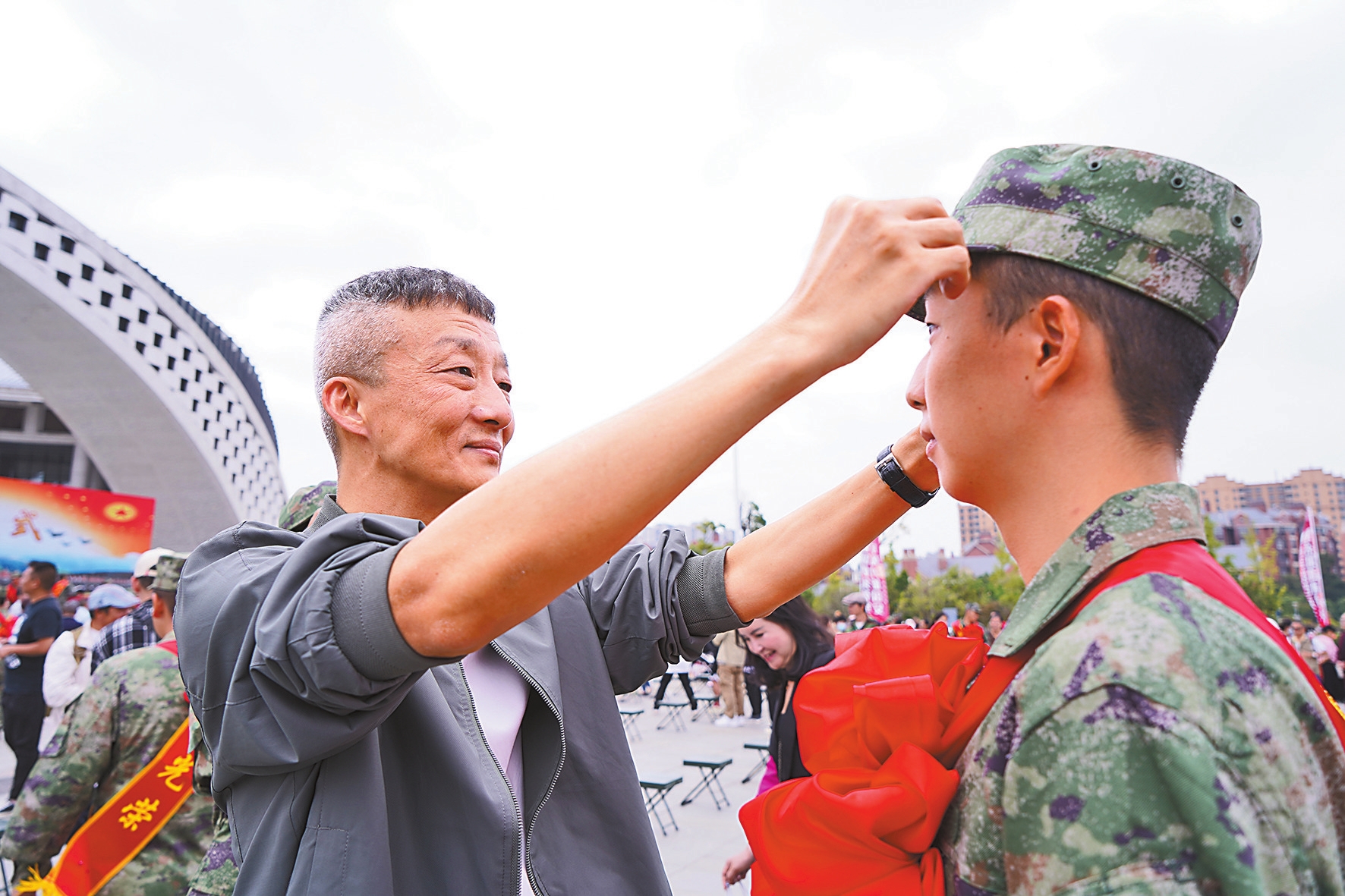 官渡区2023年度下半年新兵出征仪式近日在云南大剧院广场举行。出征仪式现场,152名来自官渡区的青年胸前佩戴红花,身披绶带,在嘹亮的《中国人民解放军军歌》歌声中,整装待发,逐梦军营。
