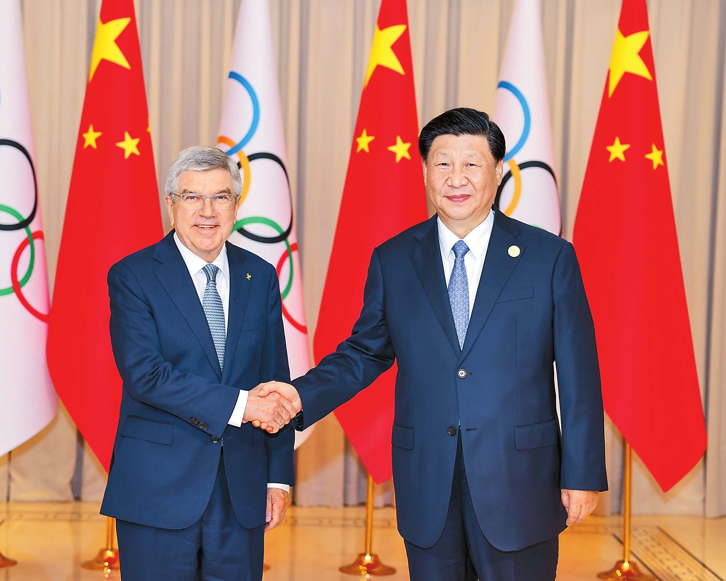 习近平强调,中国一贯重视发展体育事业,积极参与国际奥林匹克事务,践行“更快、更高、更强——更团结”的奥林匹克格言。去年中国克服新冠疫情等挑战,向世界奉献了一届“简约、安全、精彩”的北京冬奥会,北京成为全球首个“双奥之城”。中国传播奥林匹克精神的脚步永不停歇,愿同国际奥委会一道,坚持体育非政治化原则,充分利用北京冬奥会遗产,为推进奥林匹克事业和构建人类命运共同体作出新的更大贡献。目前,杭州亚运会的准备工作已经就绪。中国政府和中国人民完全有信心呈现一届“中国特色、亚洲风采、精彩纷呈”的体育盛会,为推动奥林匹克运动发展、促进亚洲人民团结和友谊作出新的贡献。