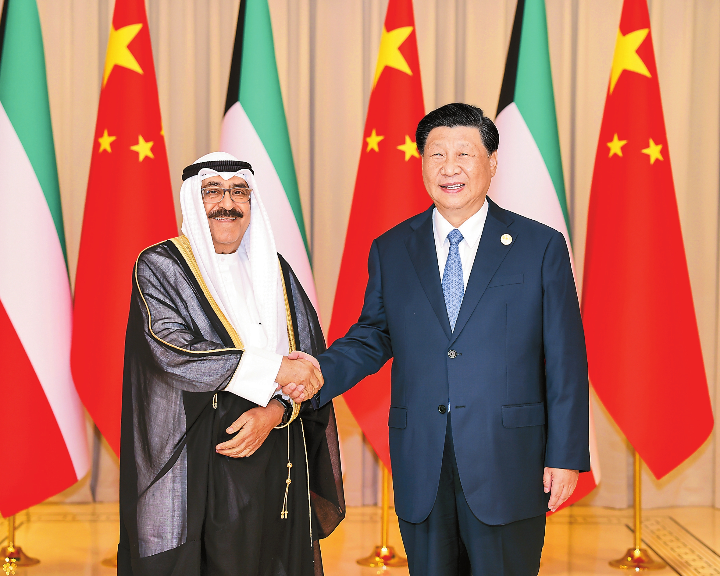习近平强调,中方支持科威特维护国家主权和领土完整,愿同科方共同维护不干涉内政这一发展中国家安身立命的“黄金法则”。中方赞赏科方积极参与共建“一带一路”合作,支持科方实施“2035国家愿景”,愿同科方深化发展战略对接,加强投资、能源、基础设施、环境治理、数字经济等领域合作,深化执法安全和反恐合作,密切人文交往。希望科方继续支持中国乡村振兴战略,并继续为中国企业赴科投资提供公平、透明、非歧视市场环境。中方愿同科方落实好首届中国—阿拉伯国家峰会和中国—海湾阿拉伯国家合作委员会峰会成果,不断提升中阿、中海集体合作水平,增进在联合国等多边平台沟通合作,维护发展中国家共同利益。