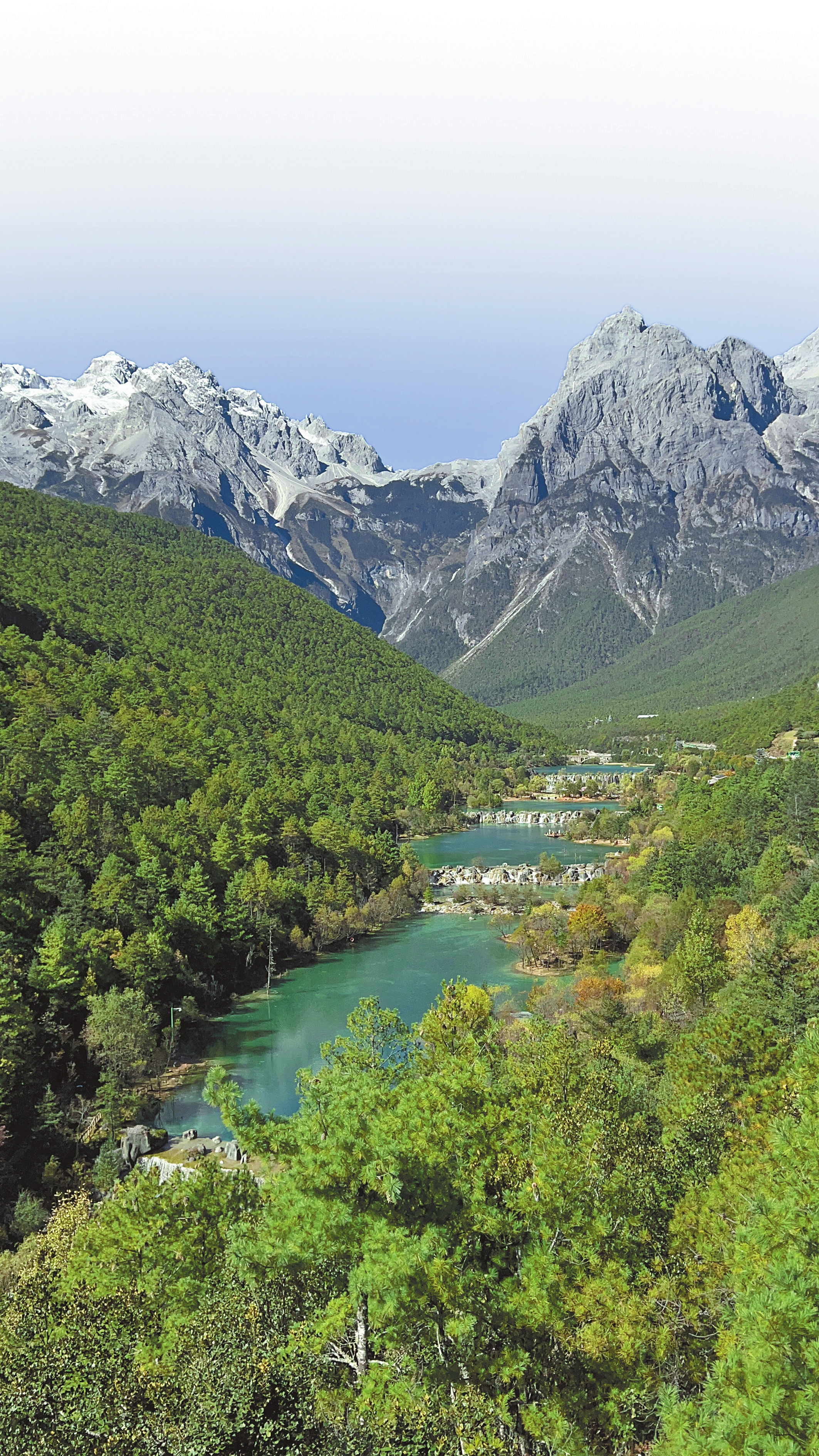 玉龙雪山是北半球离赤道最近的雪山,终年积雪。雪山脚下的甘海子是一个天然草甸牧场,辽阔的草甸上散落着一棵棵低矮的松树;位于东麓的蓝月谷,俗称“白水河”,湛蓝如玉的湖水、雄奇秀丽的峡谷风光吸引国内外游客纷至沓来。