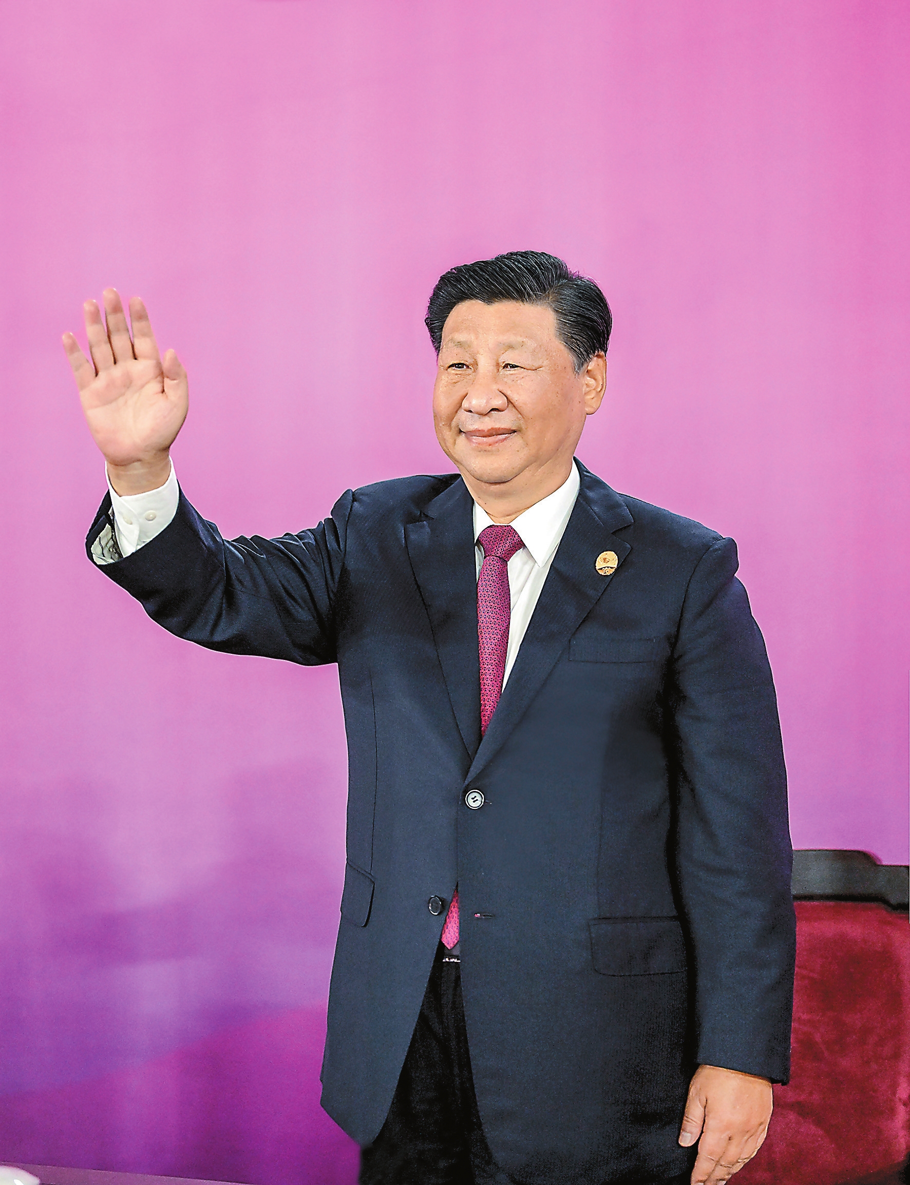 9月23日晚,第十九届亚洲运动会在浙江省杭州市隆重开幕。这是国家主席习近平在主席台上向大家挥手致意。新华社记者 李学仁 摄