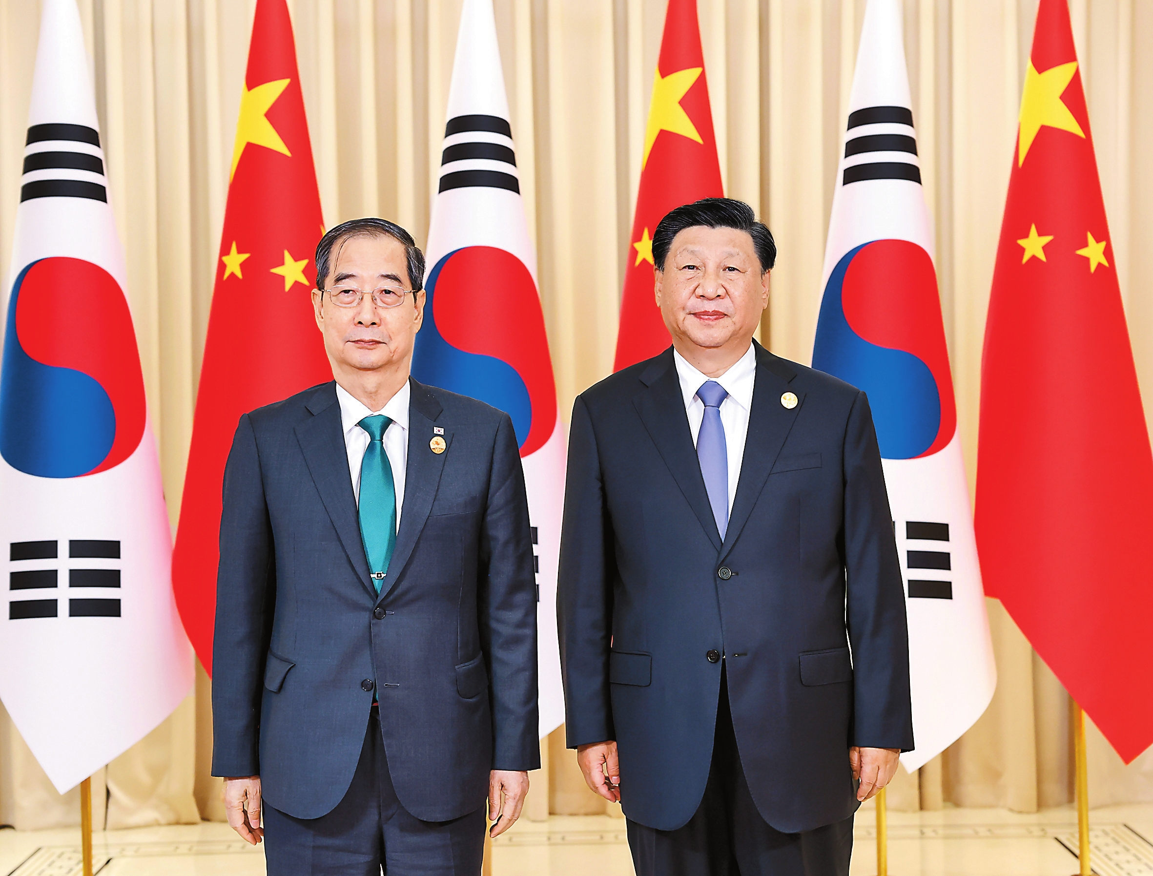 习近平指出,中国和韩国是搬不走的近邻,也是分不开的合作伙伴。1992年建交以来,中韩关系快速发展,给两国人民带来重要利益。中韩关系走稳走实,符合两国和两国人民共同利益,对促进地区和平和发展也是利好。中方愿同韩方一道努力,推动中韩战略合作伙伴关系与时俱进、不断发展。