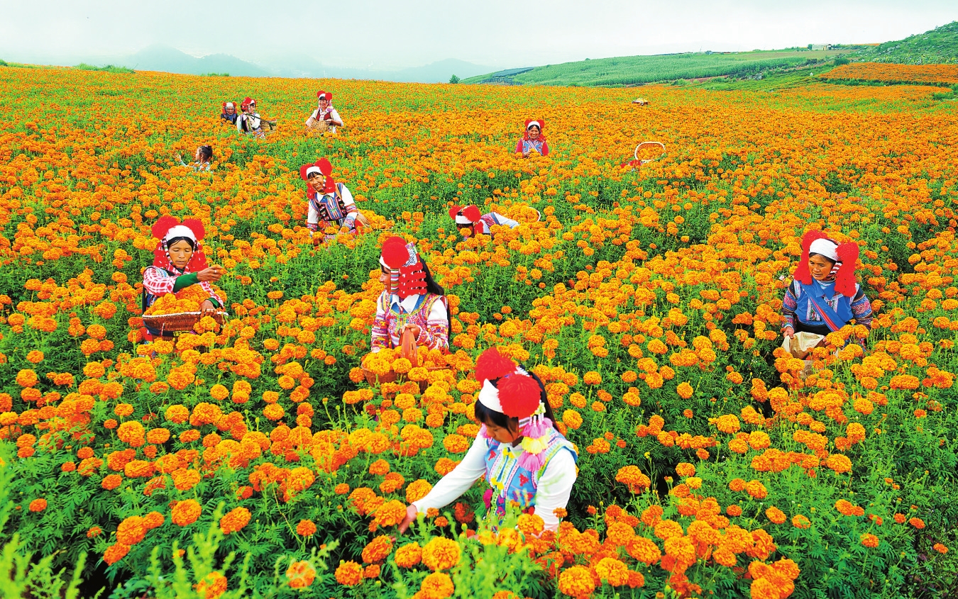 在开远市,2万余亩金灿灿的万寿菊竞相开放,预计总收入可达3000万元;泸西县午街铺镇的高原梨园里,“美人酥”“满天红”等品种的高原梨压弯了枝头,工人们分工合作,热火朝天地采摘、挑选、装筐,一派繁忙景象;在河口瑶族自治县,南溪镇大南溪村300余亩百香果迎来丰收,一个个饱满的果实挂满藤蔓,从村民自发种植,到流转土地集体参与发展,百香果正逐步成为村里的致富新产业……
