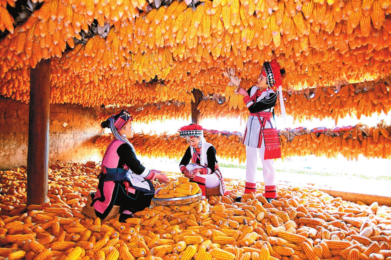 连日来,红河哈尼族彝族自治州各地陆续进入石榴、苹果、玉米等农产品收割期和采摘期。
