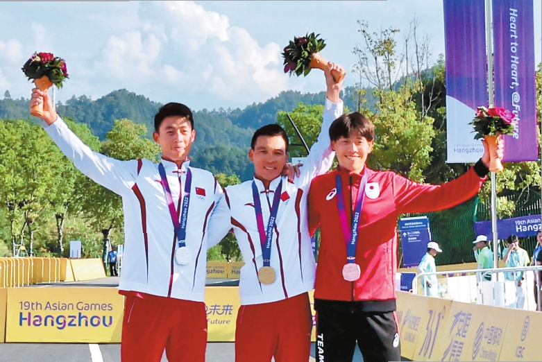本报杭州专电(记者 娄莹) 9月25日,杭州第19届亚运会山地自行车男子奥林匹克越野赛在淳安界首体育中心山地自行车赛场举行,中国选手包揽该项目冠、亚军,米久江勇夺冠军,来自昆明的袁金伟获得亚军,这也是云南选手在本届亚运会上斩获的首枚奖牌。