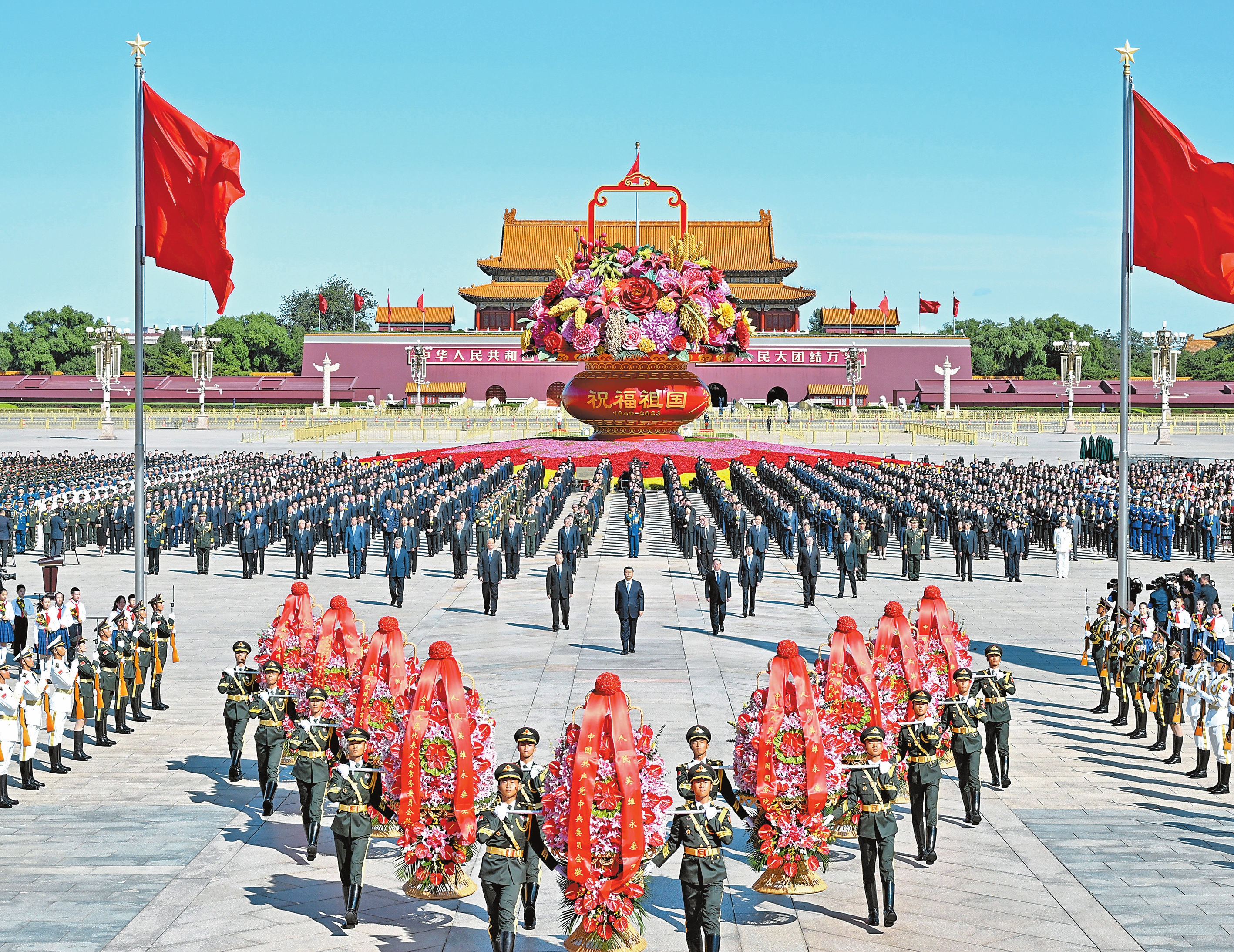 9月30日上午,党和国家领导人习近平、李强、赵乐际、王沪宁、蔡奇、丁薛祥、李希、韩正等来到北京天安门广场,出席烈士纪念日向人民英雄敬献花篮仪式。 新华社记者 申宏 摄