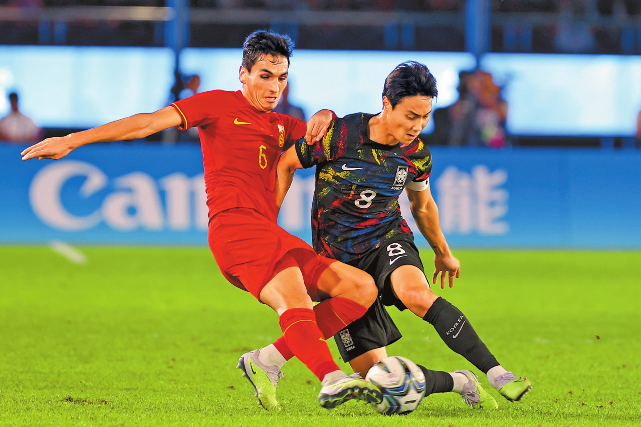 10月1日,在两大主力高天意、蒋圣龙缺席的情况下,中国男足亚运队在杭州黄龙体育中心体育场迎战韩国队,最终以0:2落败,无缘四强。