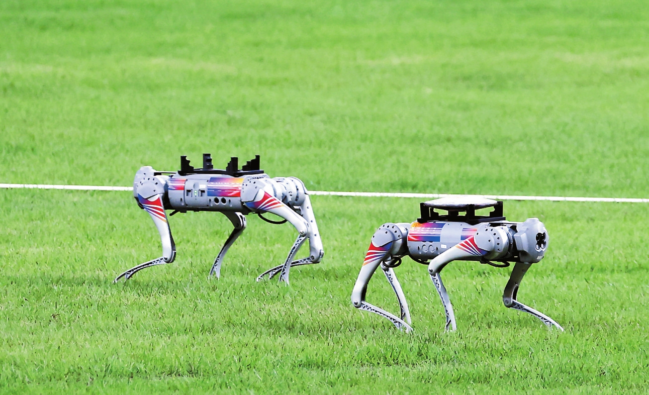 对于体重只有12公斤的机器狗来说,想要稳稳地扛回铁饼,也并非易事。1至2公斤的铁饼不算重,但当机器狗跑起来时,铁饼的重心会改变,容易导致运输过程中翻车,有可能会磨损比赛器材。“我们调整了运动控制的算法,让机器狗在负重时也能运动自如。”工作人员介绍,近半年里,他们反复测试了上百次运动控制算法,并对其不断优化和修改,确保机器狗可以举重若轻,如履平地。记者发现,机器狗也有“替补”队员,虽然一场铁饼比赛时长不过半小时,但工作人员依然准备了2只机器狗和4块备用电池,交替运输铁饼,保证比赛高效进行。