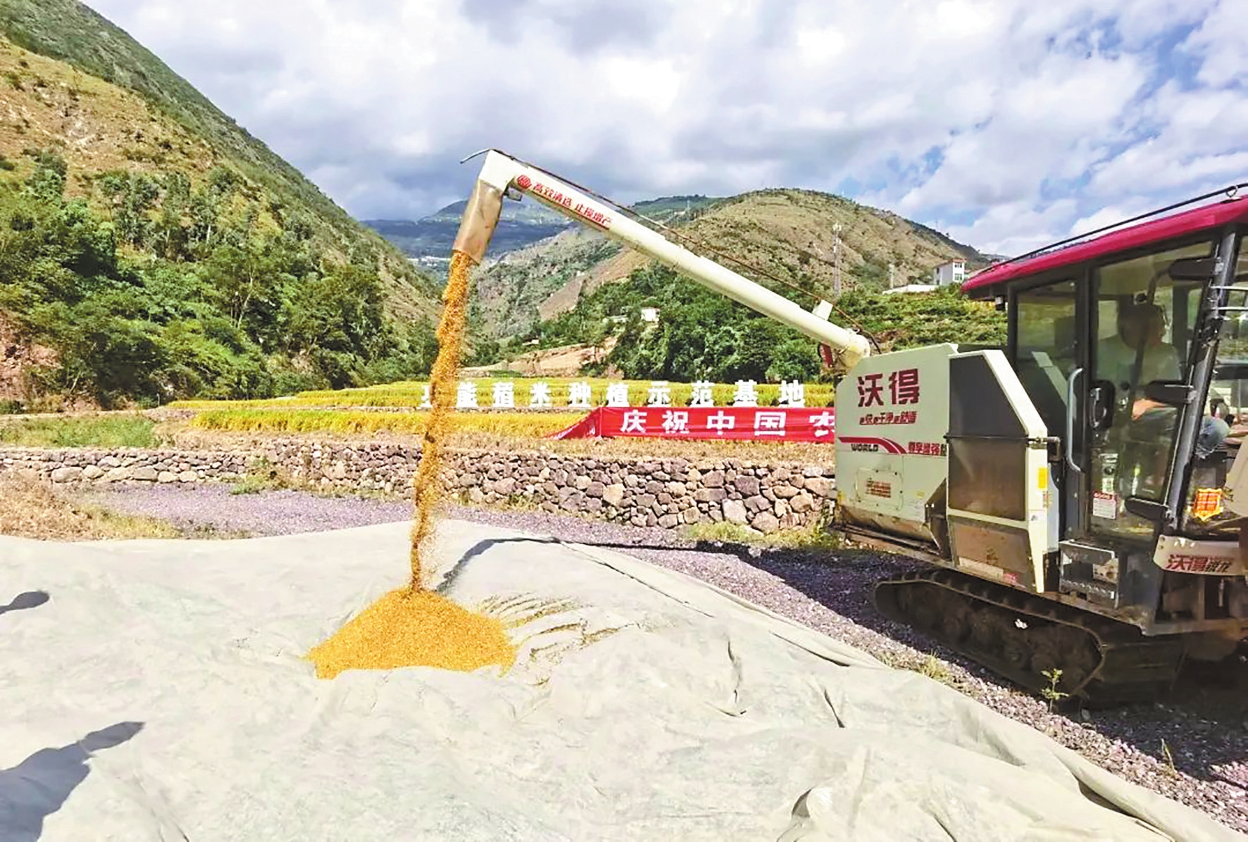 本报讯(记者 喻劲猛) 9月24日上午,东川区汤丹镇中河村由荒滩改造的石头梯田里一片喜悦与忙碌,首次在云南小江干热河谷试种的功能水稻“稳糖米”正式收割测产。根据《全国粮食高产创建测产验收办法(试行)》测算,“稳糖米”亩产干谷净重657.1公斤,高于同期同地块对比种植的本地“小白谷”亩产干谷净重604.13公斤,超过昆明水稻的高产标准。