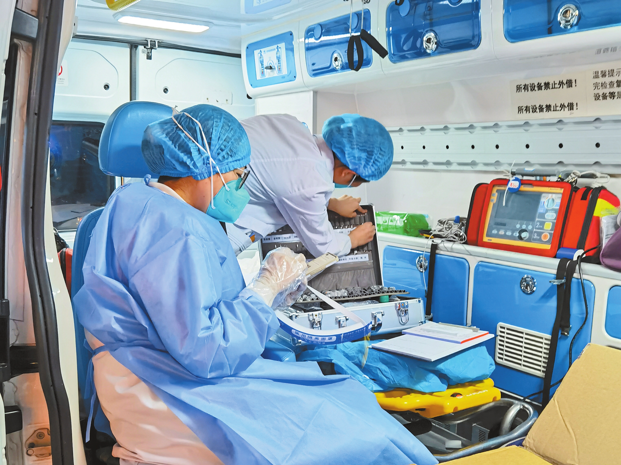到达急救现场后,急救医生对患者迅速予以现场检查处置,吸氧、测量生命体征……第一时间与送达医院急诊科取得联系,开启绿色通道,患者送至医院后立即接受治疗。