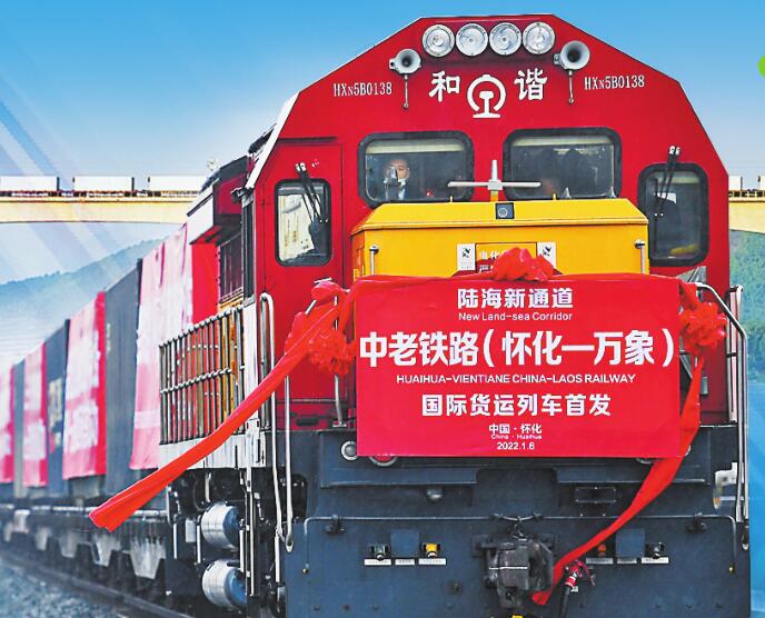 2022年1月6日,中老铁路通车后由中部地区发出的首趟中老国际货运列车从怀化发车,驶向老挝万象。当年4月12日,中老铁路“万象—怀化”国际货运班列抵达怀化国际陆港,怀化成为中部地区首个实现中老班列双向开行的城市。
