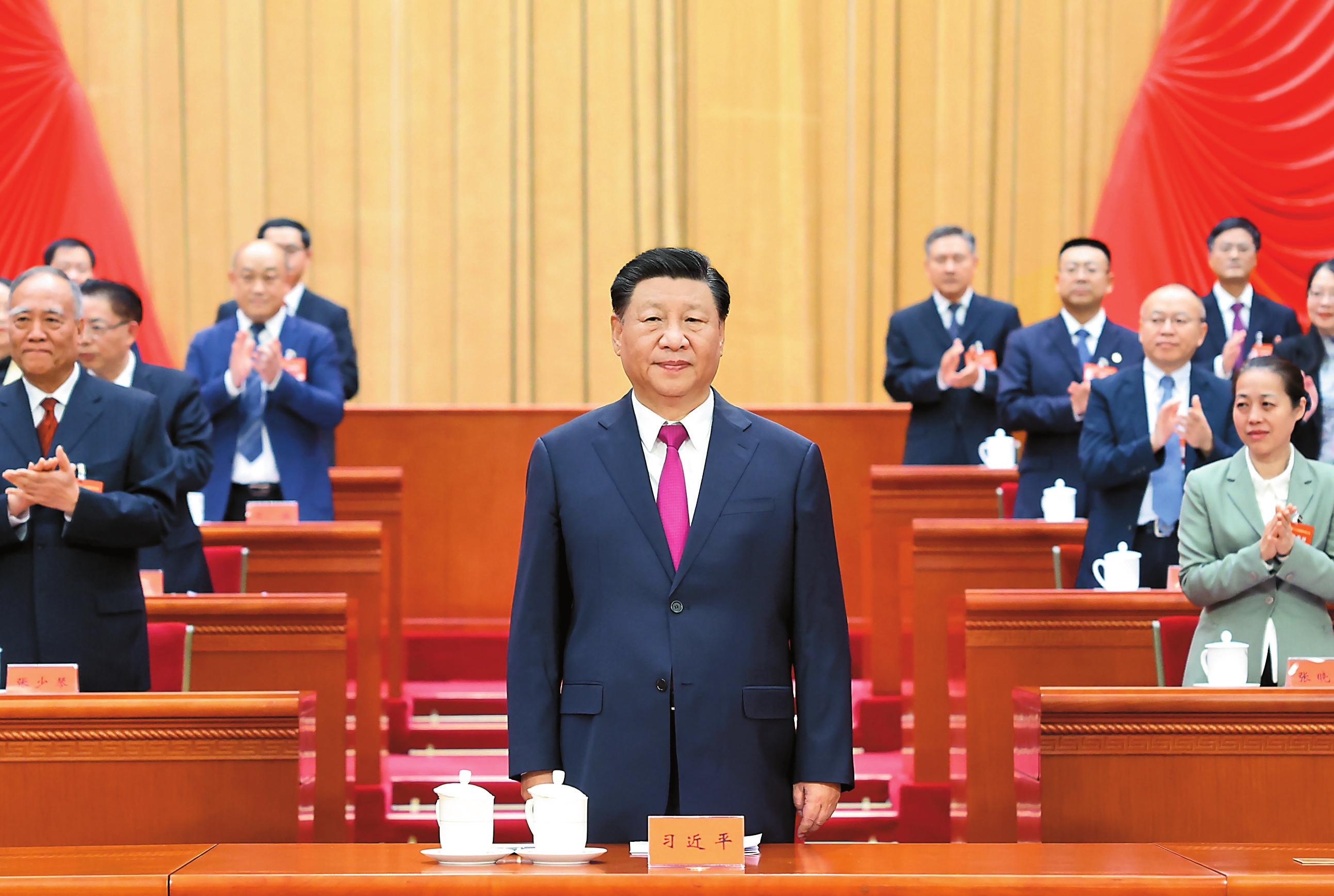 上午10时,中共中央总书记、国家主席、中央军委主席习近平等步入会场,全场响起热烈的掌声。