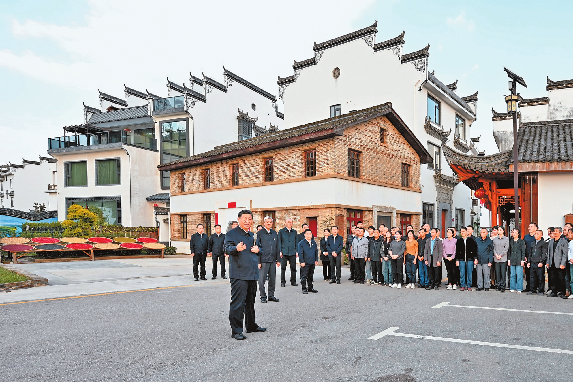 10月10日至13日,中共中央总书记、国家主席、中央军委主席习近平在江西考察。这是11日下午,习近平在上饶市婺源县秋口镇王村石门自然村考察时,同村民们亲切交流。 新华社记者 谢环驰 摄