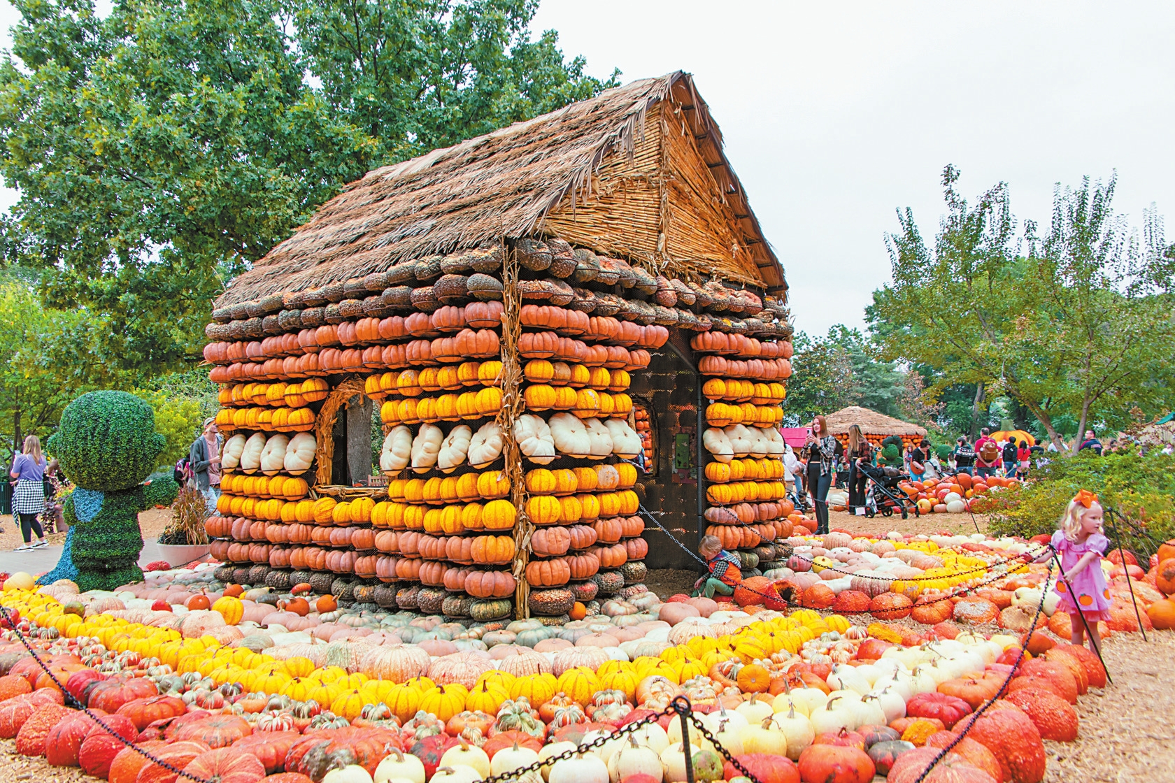 美国得克萨斯州达拉斯市植物园每年秋天都要搭建一座“南瓜小镇”,今年的主题是美国著名漫画人物查理·布朗和他的小伙伴们。十万个南瓜堆砌或搭建成不同的造型,吸引了大批游客。图为10月12日在美国得克萨斯州达拉斯植物园的“南瓜小镇”里拍摄的一个南瓜屋。