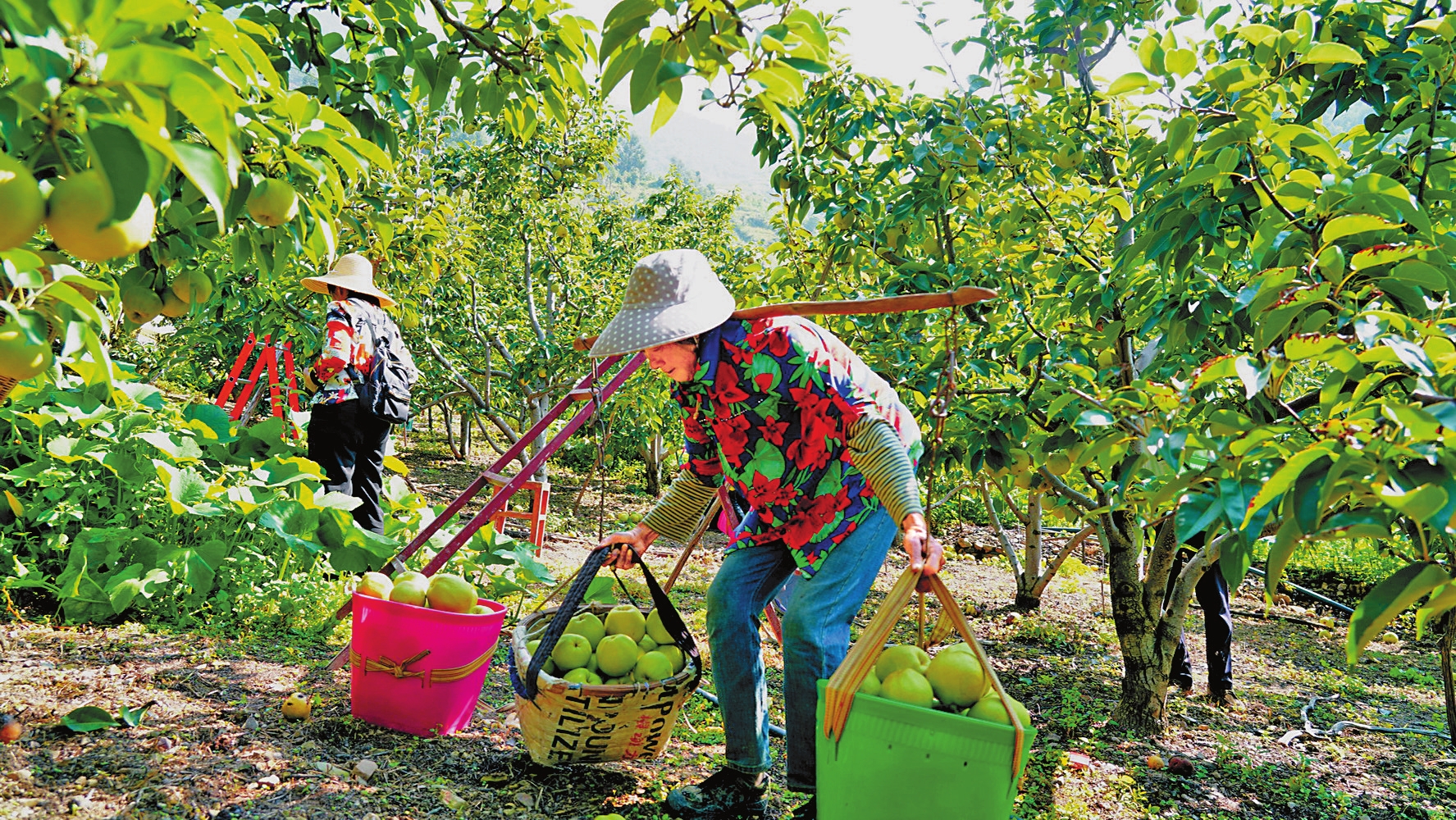 大坪掌村村民环绍学介绍:“今年的蜂糖梨已大量进入盛果期,现在丰产上市了,我们村每家都种了20亩至60亩不等。在管理上,我们尽量使用厩肥,对病虫害进行统防联防。我家去年2万多公斤卖得8万多块钱,今年估计也有2万多公斤。”