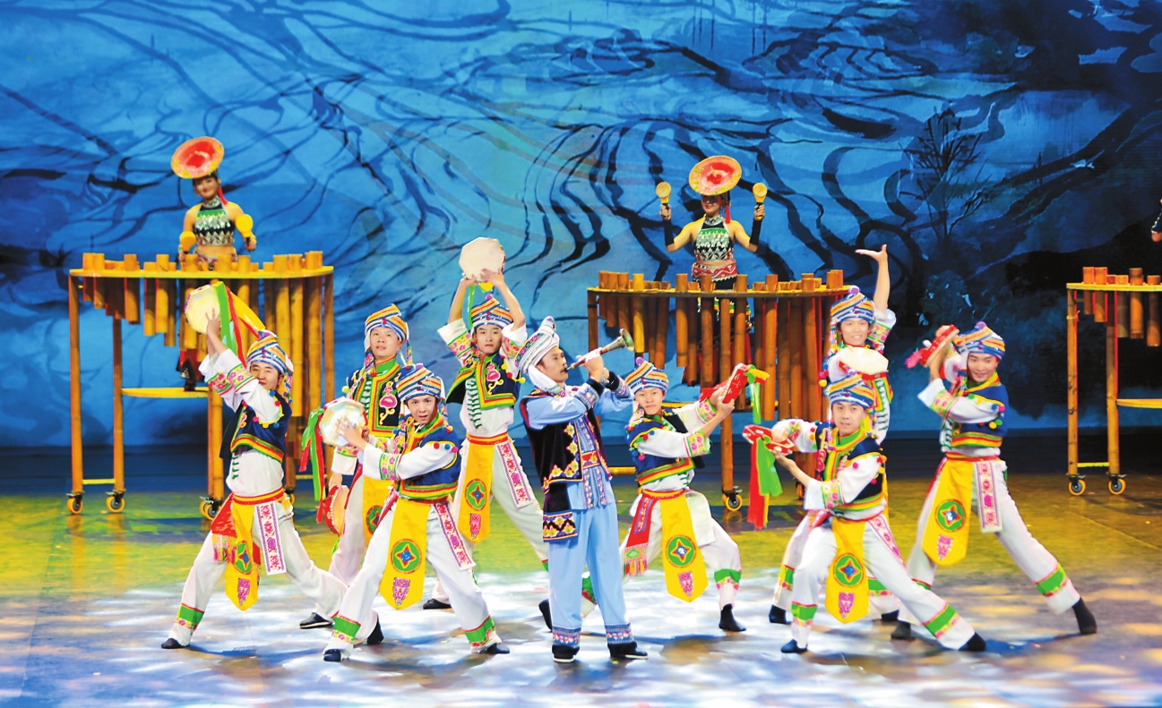 展演在歌舞《一带一路繁花开》中拉开帷幕。流传于云南傣族地区的非遗传唱《章哈》,通过柔美抒情、流畅悦耳的演唱方式,将傣族古老生活娓娓道来;取材自云南亚洲象北上南归事件的舞蹈《太平有象》,生动演绎人与自然和谐共融的故事;傈僳族原生态演唱《摆时调》用古老的音乐形态,展示中华儿女朝气蓬勃团结奋进之姿;特色器乐演奏《勐巴拉娜西》、特色竹乐演奏《竹乐·鼓舞》以竹笛、芦笙、竹管琴等多种竹乐表达云南“万竹皆可乐”的浪漫情愫,传递出阵阵驼铃与片片白帆共绘锦绣画卷的精彩故事。优秀青年歌唱家扎西顿珠深情献唱歌曲《美美与共》,用悠扬音乐表达各民族的和谐之美。同时,《小河淌水》《婚誓》《阿佤人民唱新歌》等蜚声海内外的民歌也以民族语经典联唱的形式亮相展演。