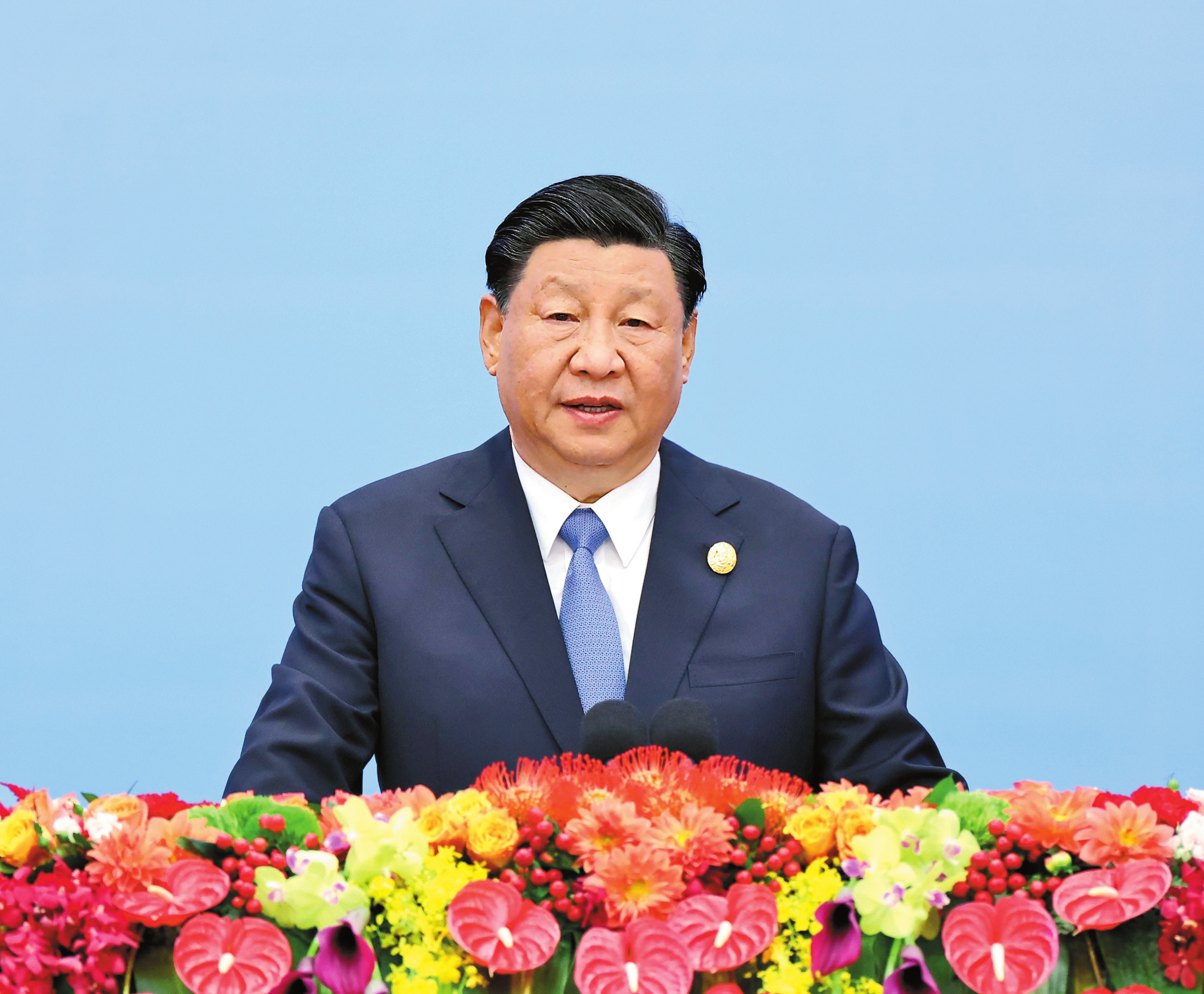 习近平主席发表题为《建设开放包容、互联互通、共同发展的世界》的主旨演讲。(演讲全文见第二版)