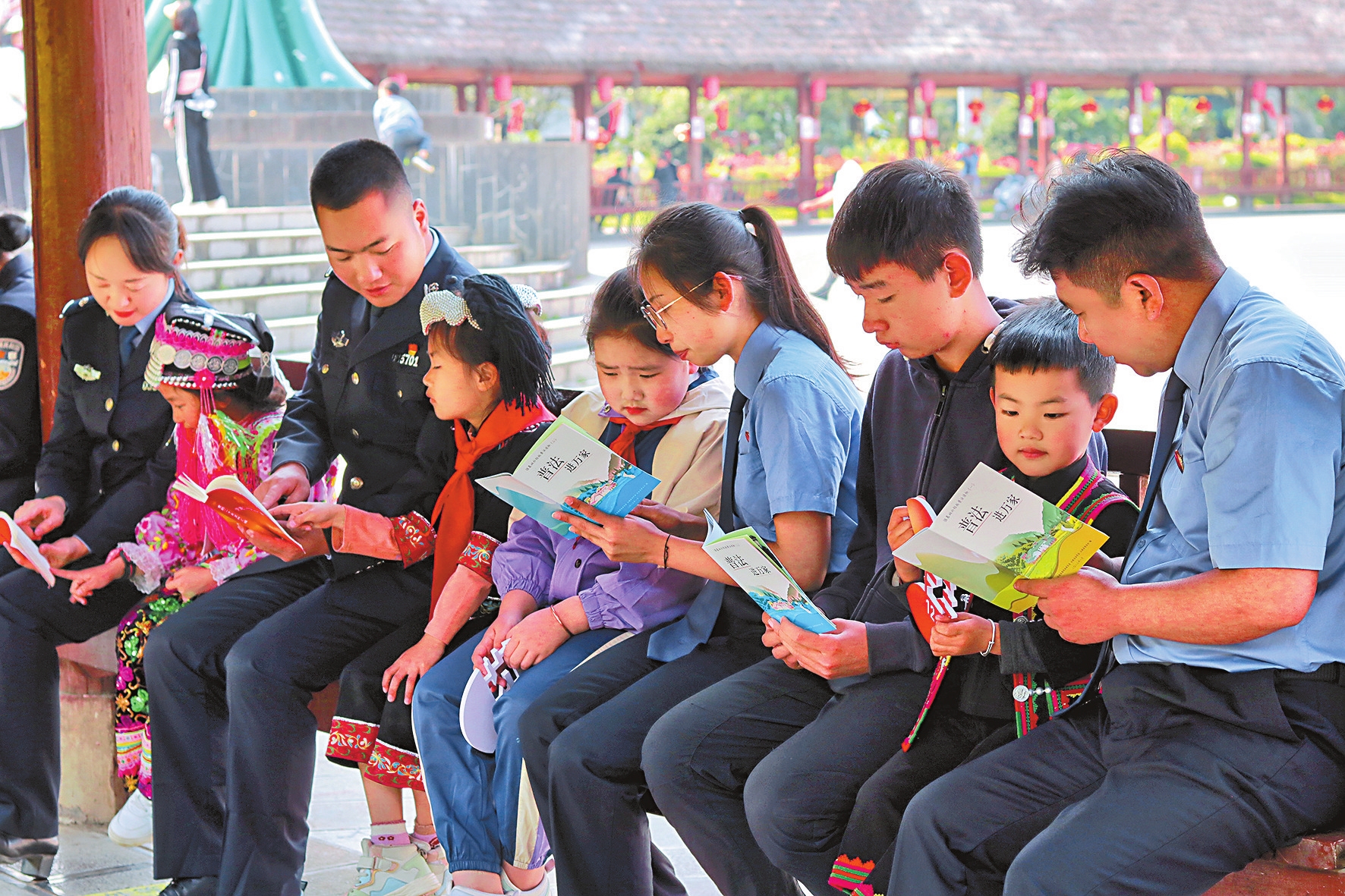 法院系统利用法庭巡回审判等契机,组织零距离观摩庭审、面对面以案释法等活动,说身边事教育身边人;检察机关重点开展“检校共建、法护成长”活动,提升未成年人法治教育实效;公安机关以开设夜校小讲堂等形式讲述危险驾驶、电信诈骗、非法集资等案例,让群众充分感受到法治在身边;司法行政机关采用“服务+普法”“调解+普法”工作模式,以案例分析、咨询解答开展双语普法、按需普法……