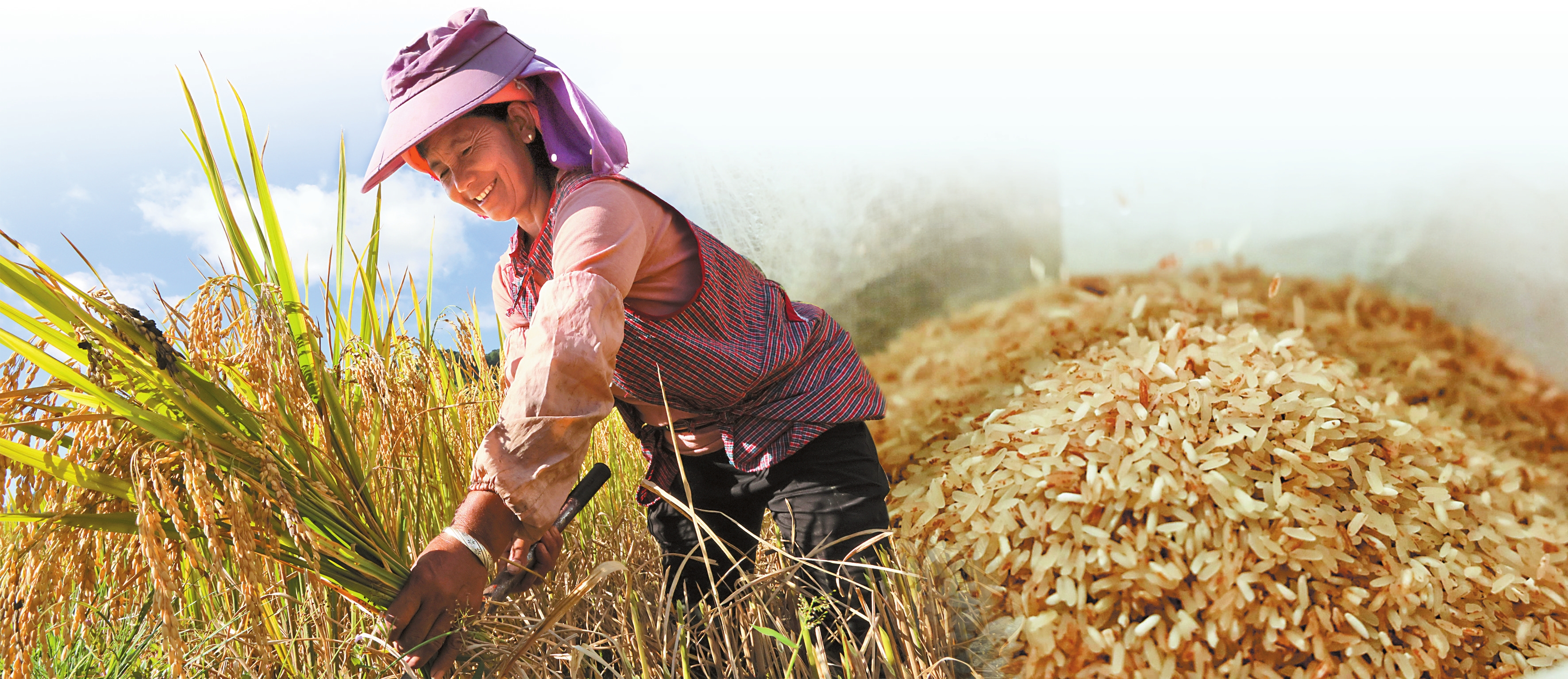 水稻种植是绿春各民族安身立命的技艺,针对梯田红米无人种、收益低、卖粮难等问题,绿春县通过“对口帮扶单位+企业+农户”模式,大力发展订单农业,积极探索线上线下的多元化营销方式,有效提升百姓种植效益。目前,全县红米种植面积达3万亩,成为全县群众增收的又一项支柱产业。