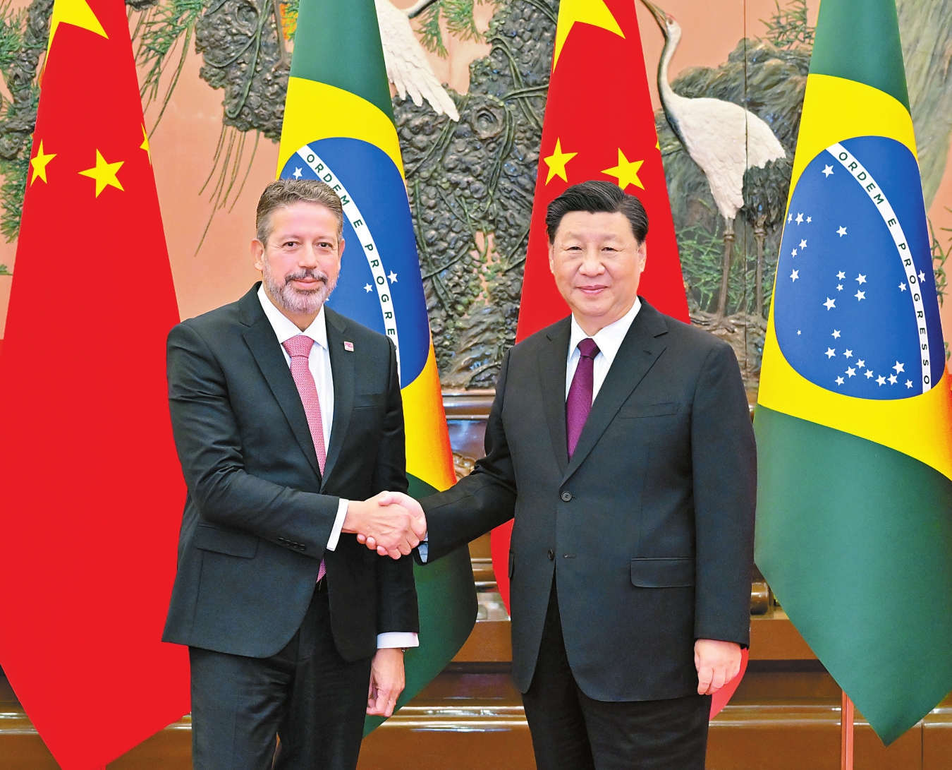 习近平指出,今年春天卢拉总统对中国进行成功国事访问,我同他举行了富有成果的会晤,就引领开辟新时代的中巴关系达成重要共识。中国和巴西分别是东西半球最大的发展中国家,是具有全球影响的新兴大国。面对变乱交织的世界,中巴理应坚定相互支持、彼此呼应。“一带一路”倡议同巴西“再工业化”和新版“加速增长计划”高度契合,完全可以实现对接,助力各自现代化进程。中方支持巴西明年主办二十国集团领导人峰会以及后年举办《联合国气候变化框架公约》缔约方大会,愿同巴方加强协调配合。