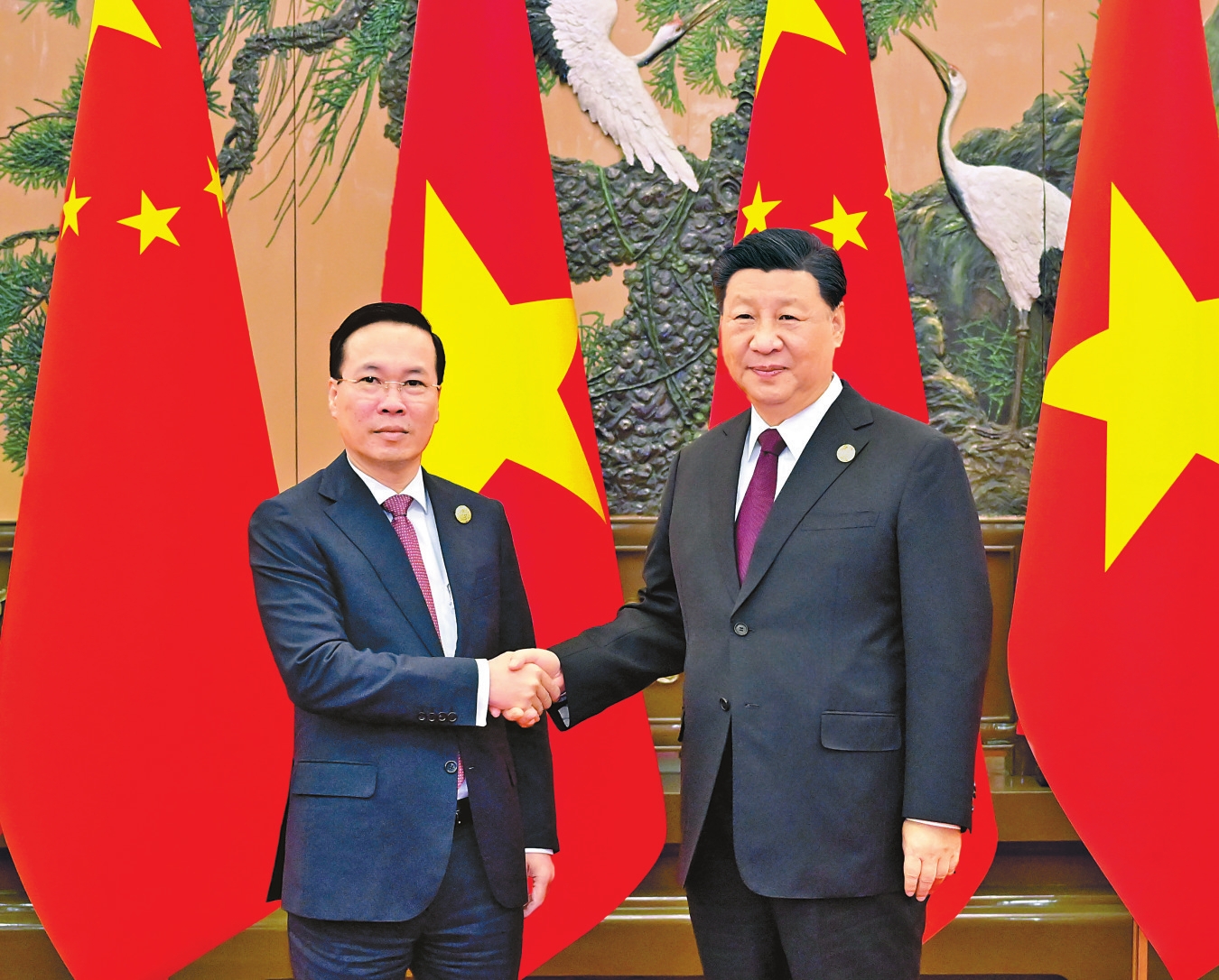 习近平指出,中越两国在争取各自民族解放事业中相互支持,结下了“同志加兄弟”的深厚情谊。中越都在推进各自的社会主义现代化事业,都把中越关系作为各自对外政策的优先方向,都把对方发展视为自身发展机遇。面对风云变幻的国际形势和艰巨繁重的国内发展任务,两国要不忘传统友好初心,牢记共同理想使命,携手走好社会主义道路,构建具有战略意义的命运共同体,确保两国关系始终行驶在互利共赢、携手发展的快车道上。