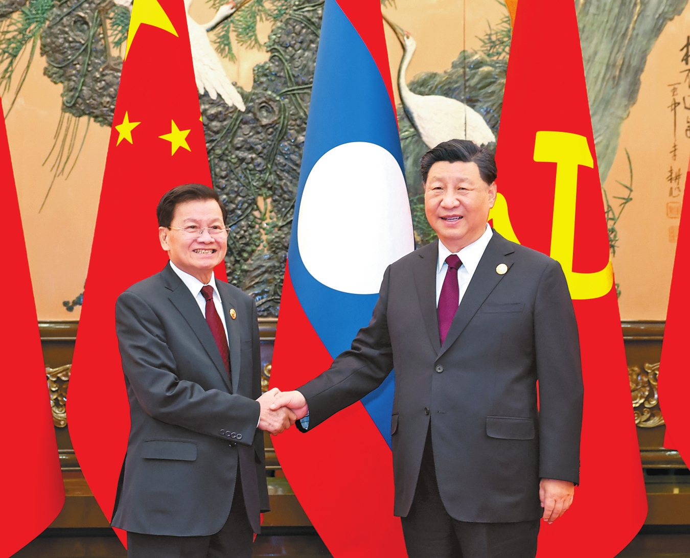10月20日上午,中共中央总书记、国家主席习近平在北京人民大会堂会见来华出席第三届“一带一路”国际合作高峰论坛并进行工作访问的老挝人民革命党中央总书记、国家主席通伦。 新华社记者 刘卫兵 摄