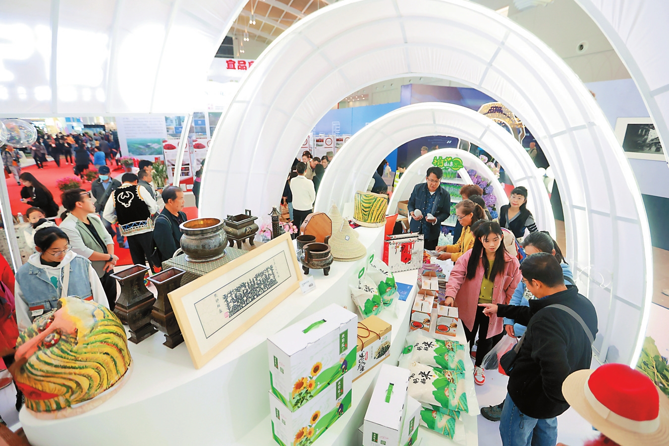 10月21日,创意云南文化产业博览会迎来观展高峰。图为晋宁展区一角。