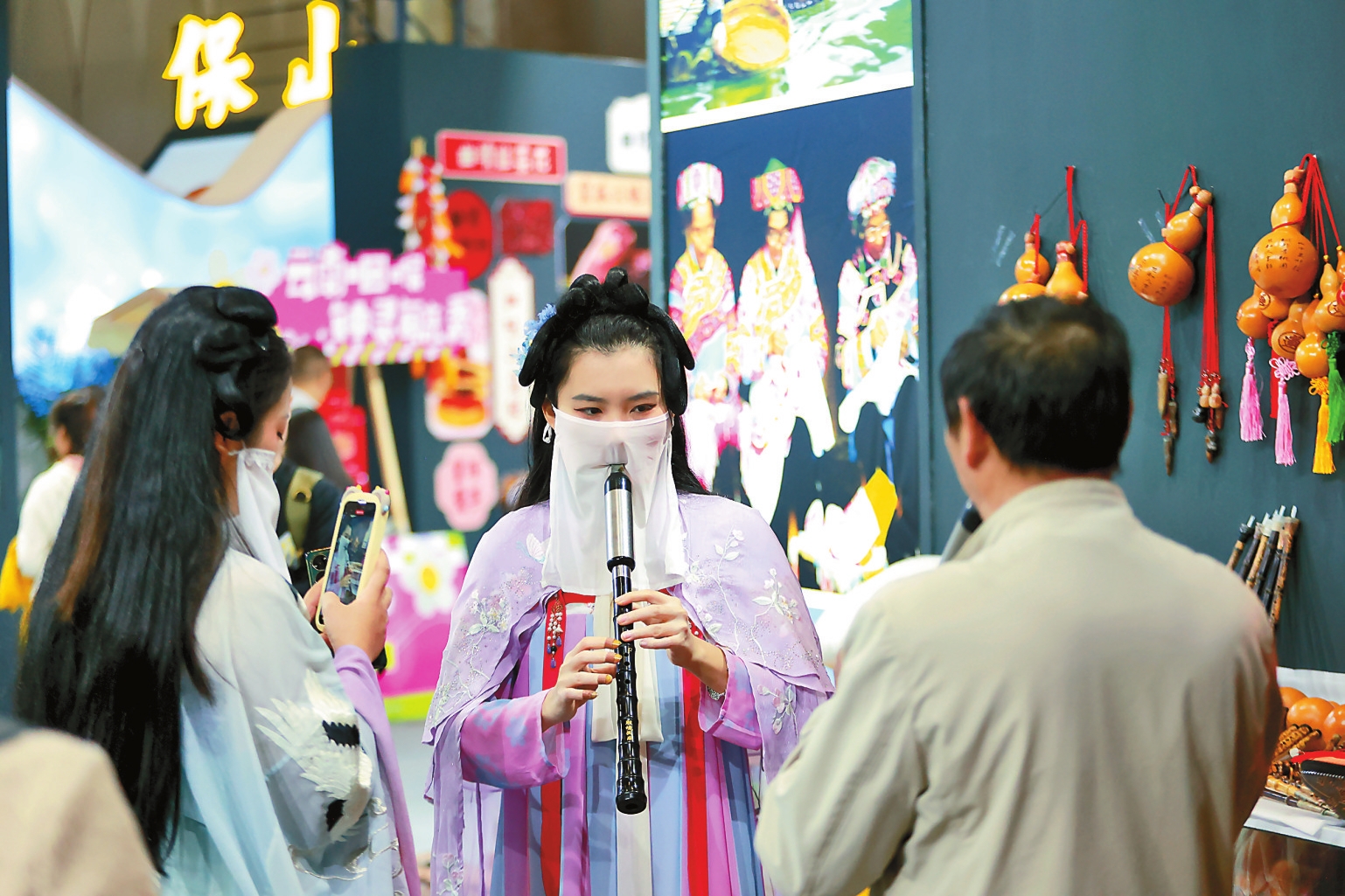 连日来,众多市民游客来到文博会,近距离感受文化氛围。在曲靖展区,观展者身着汉服,沉浸式体验非遗文创;在创意昆明馆,非遗传承人现场制作出栩栩如生的木雕,引来阵阵惊叹;西南联大文创展区带着人们穿越旧时光、感受新时尚……观展者们穿梭在各大展区之间,感受着文博会的魅力。本报记者 陈飞 周灿 杨峥 黄兴能 胡妤雅 摄