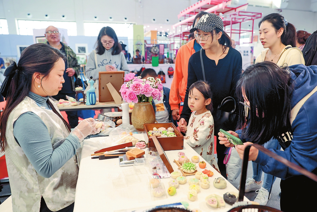 连日来,在创意云南文化产业博览会上,各展区非遗文化及传统手工艺项目开设强互动与新体验环节,以寓教于乐的方式帮助观众沉浸式了解、学习优秀传统文化。瓦当拓印、木工手作、掐丝珐琅彩画、云南风筝、唐菓子等吸引了众多观众,他们在传承人的指导下,体验传统手工艺制作的乐趣,领略非遗文化的独特内涵。本报记者 周灿 胡妤雅 见习记者 高吴双 摄