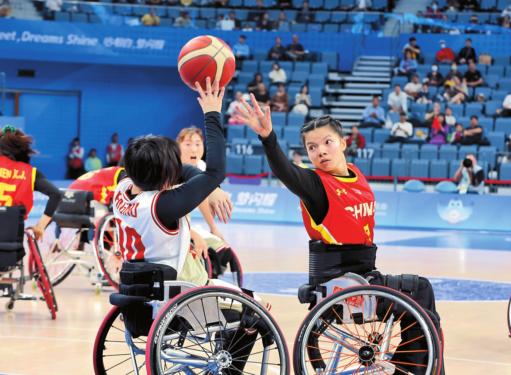 有云南运动员参加的集体项目,轮椅篮球中国女队以59:33战胜日本队,盲人门球中国男女队分别击败了沙特队和伊朗队,盲人足球中国队1:0力克日本队。