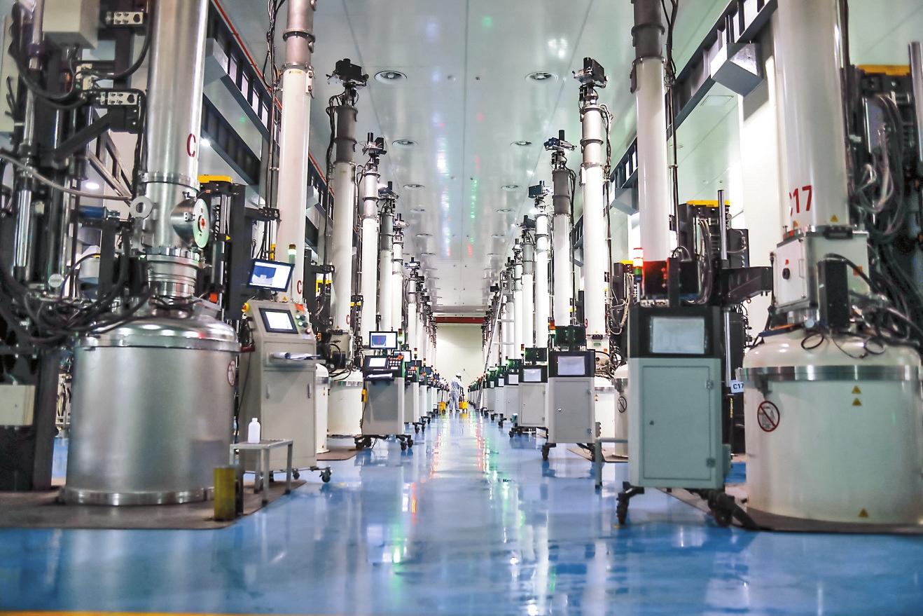 目前,隆基绿能在云南建起保山基地、丽江基地、楚雄基地、曲靖隆基4个生产集群,在职员工总数突破1.4万人。截至2022年末,隆基绿能已在云南形成约72吉瓦的拉晶产能和82吉瓦的切片产能,在云南已投产的切片产能约占隆基绿能总产能的30%以上。2019年、2020年、2021年,隆基绿能在云南基地分别实现产值139亿元、237亿元、406亿元。2022年隆基绿能在云南总产值超过700亿元,为云南产业强省建设注入强劲动能。