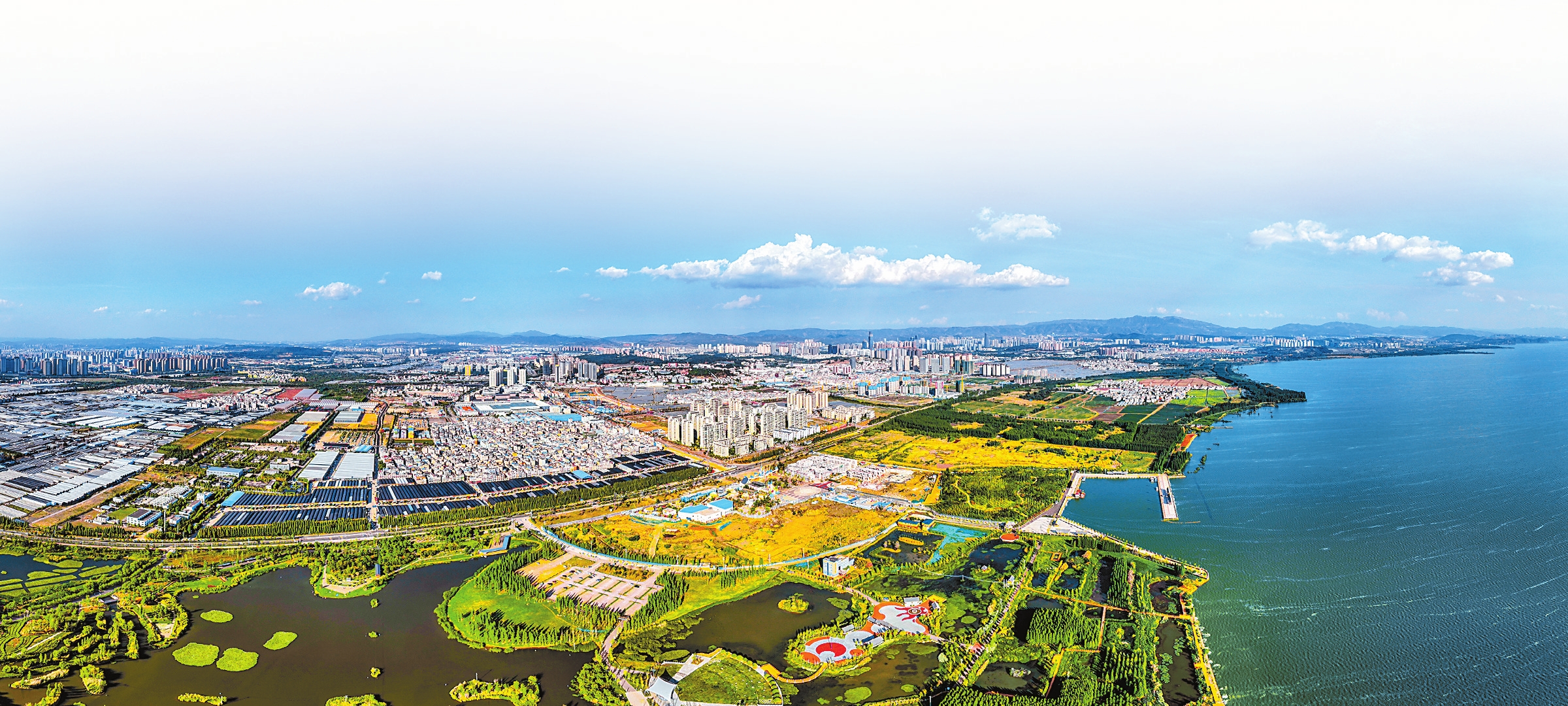 百里滇池碧波荡漾,万亩梨园瓜果飘香,昆明南站高铁飞驰,斗南花市人声鼎沸,云南省数字经济开发区建设如火如荼……这里是活力四射的现代化新城——昆明市呈贡区。20年前,云南省委、省政府作出建设现代新昆明的重大战略决策,设立呈贡新区,将呈贡规划为昆明的政治中心、教育中心,呈贡迈出了城市革新的第一步。
