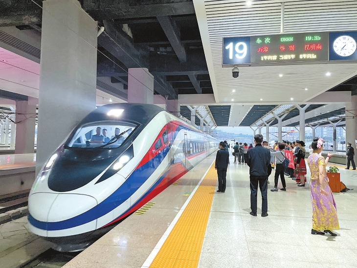 2016年12月28日,位于呈贡的昆明南站正式投入使用,云南进入高铁时代,形成了“八出省、五出境”的高铁主骨架,让呈贡的交通区位由末端节点变成了辐射南亚东南亚的门户枢纽。2021年12月3日,中老铁路通车运营,成为联通南亚东南亚的陆路大通道。2023年4月13日,中老国际旅客列车通车运营,呈贡与老挝实现了从人文到经济、从物流到商流的进一步互融互通,也为呈贡与南亚东南亚各国的交流发展带来更多可能。目前昆明南站始发列车能通达全国20余个省(自治区、直辖市),30个大中城市。高铁时代的到来,为呈贡对外开放带来了新的历史机遇,让呈贡经济发展驶入了快车道。2023年上半年,呈贡引进省外到位产业资金30.43亿元,实际利用外资2964.27万美元,引进超10亿元产业项目1个。