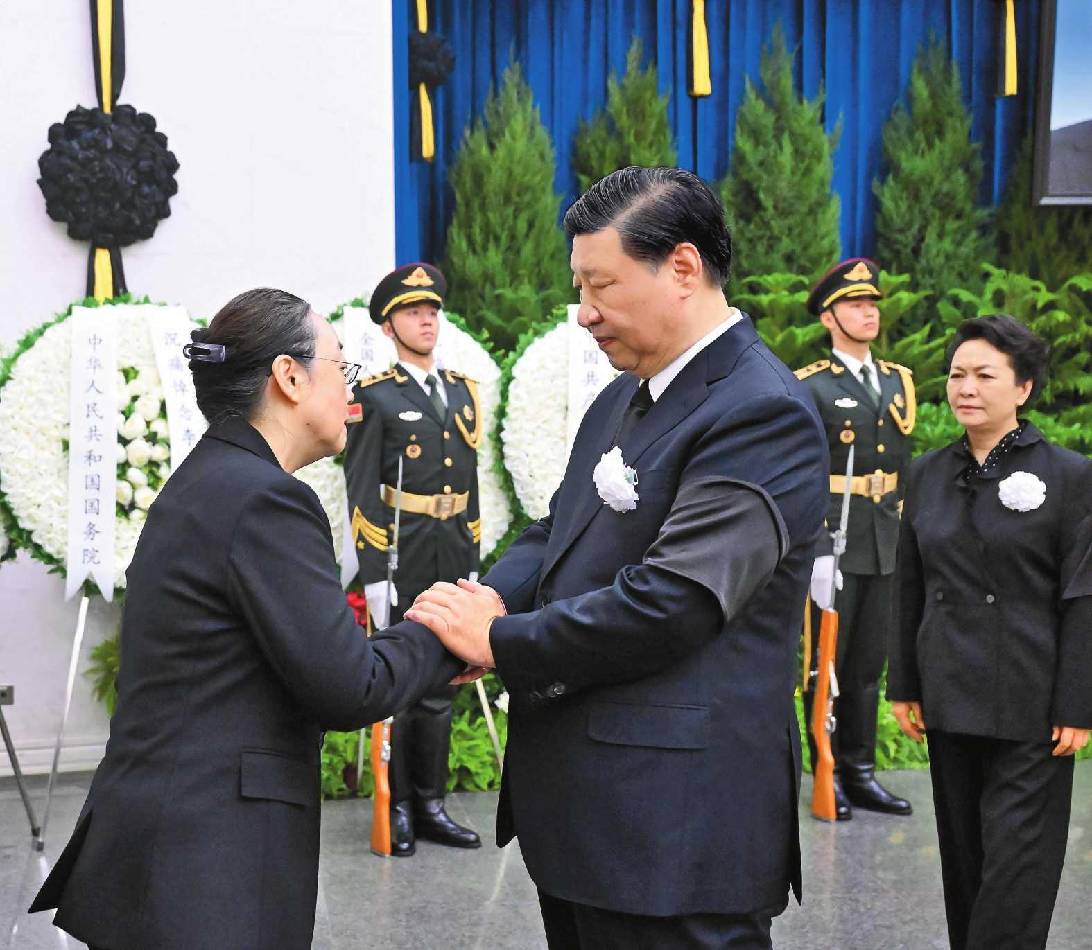 11月2日,李克强同志遗体在北京八宝山革命公墓火化。习近平、李强、赵乐际、王沪宁、蔡奇、丁薛祥、李希、韩正等前往八宝山送别,胡锦涛送花圈表示哀悼。这是习近平与李克强亲属握手,表示深切慰问。新华社记者 谢环驰 摄