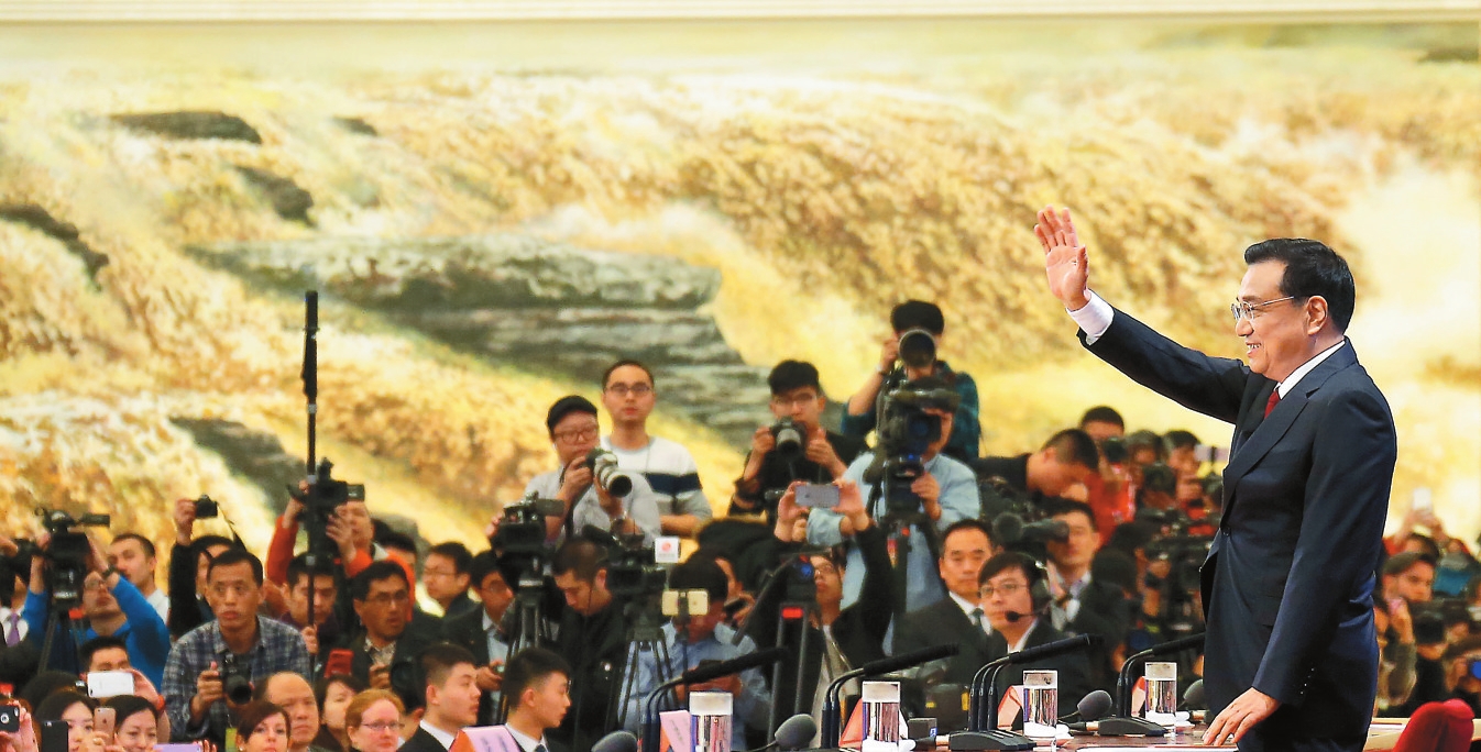 2017年10月,李克强同志在中共十九届一中全会上又一次当选为中央政治局委员、常委。2018年3月,在十三届全国人大一次会议上,他再次被任命为国务院总理,并担任国务院党组书记。在以习近平同志为核心的党中央坚强领导下,面对世界变局加快演进、新冠疫情冲击、国内经济下行等多重考验,坚持稳中求进工作总基调,完整、准确、全面贯彻新发展理念,构建新发展格局,推动高质量发展,统筹发展和安全,持续做好“六稳”、“六保”工作,统筹推进稳增长、促改革、调结构、惠民生、防风险、保稳定各项工作。创新宏观调控方式,统筹运用财政货币等政策,立足超大规模市场优势,坚持实施扩大内需战略,围绕补短板、调结构、增后劲扩大有效投资,支持交通、水利、能源等基础设施和民生工程建设,多措并举促进消费,保持经济运行在合理区间。加大对实体经济的有效支持,综合施策降低企业经营成本,及时帮助经营主体应对冲击、渡过难关。深入实施创新驱动发展战略,推动产业结构优化升级,紧紧依靠创新提升实体经济发展水平,促进数字经济和实体经济深度融合,不断培育壮大发展新动能,有效应对外部打压遏制。推进区域协调发展和新型城镇化,扩大保障性住房供给,推进城镇老旧小区改造,增强区域发展平衡性协调性,培育更多经济增长动力源。完善强农惠农政策,实施乡村振兴战略,加快推进农业农村现代化,稳步推进多种形式适度规模经营,切实保障国家粮食安全。贯彻以人民为中心的发展思想,着力保基本、兜底线、促公平,强化就业优先政策导向,加大对企业稳岗扩岗支持力度,促进教育公平和质量提升,深化医疗卫生体制改革,提升医疗卫生服务能力,加强社会保障和服务。着力推进脱贫攻坚,加强易地搬迁后续扶持,巩固拓展脱贫攻坚成果。落实绿水青山就是金山银山的理念,加强生态环境保护,促进绿色低碳发展,推动生态文明建设取得明显成效。