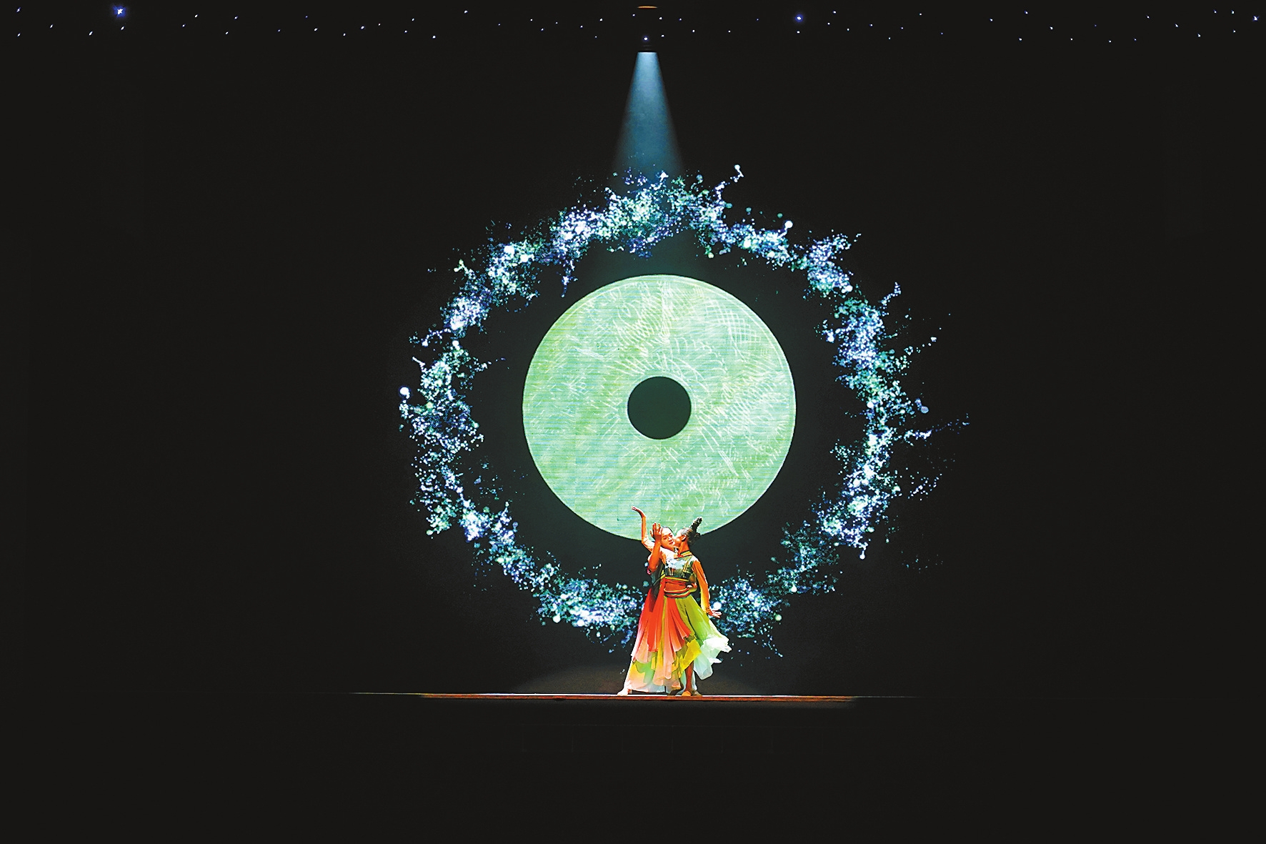 和美共享 优美的舞姿时而宛若一幅壮美和谐的生态景象,碧波万顷的抚仙湖边,万亩烟田绿意盎然;时而变幻成山上那静静伫立的红塔,夕阳余晖给它镀上了金黄的颜色;时而如同青翠空灵的翡翠,如切如磋,如琢如磨;时而又演绎着“和为贵、谐为美”的动人画卷。