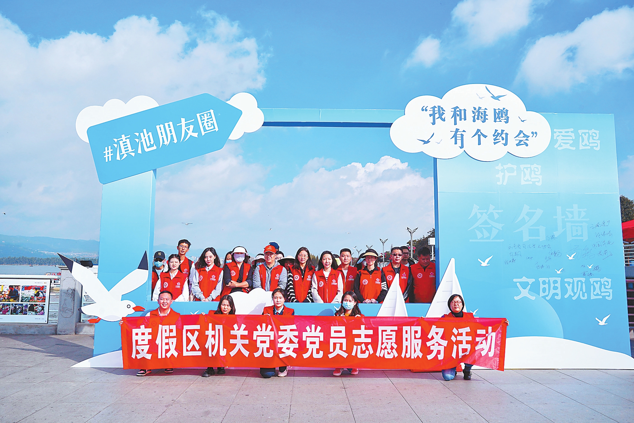 又讯(记者 党晓培 见习记者 李燕) 11月7日上午,来自滇池度假区管委会机关和辖区各级文明单位的120名党员志愿者在滇池畔举行度假区2023年学习宣传《昆明市文明观赏红嘴鸥的规定》暨爱鸥、护鸥、文明观鸥党员志愿服务活动。