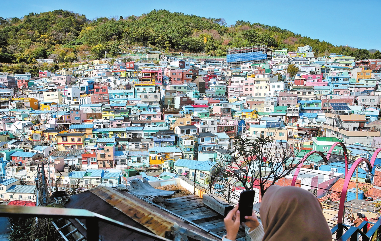 图为11月9日拍摄的韩国釜山市甘川文化村。