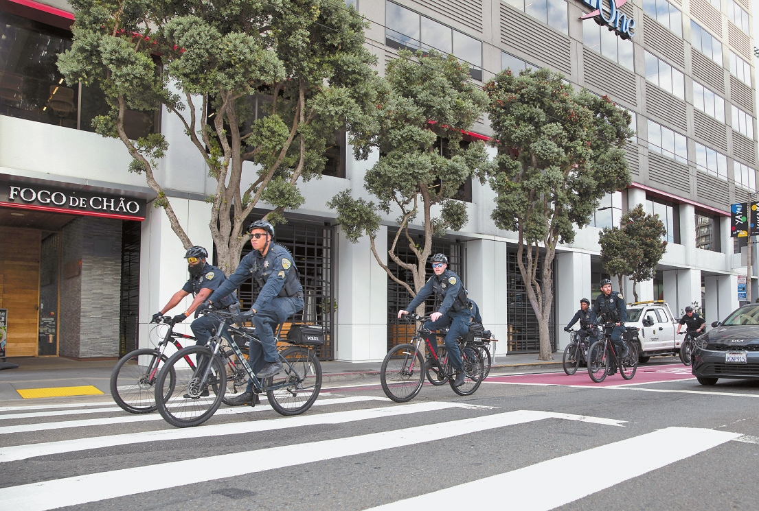 图为11月10日,警察在美国旧金山亚太经合组织会议场地外执勤。
