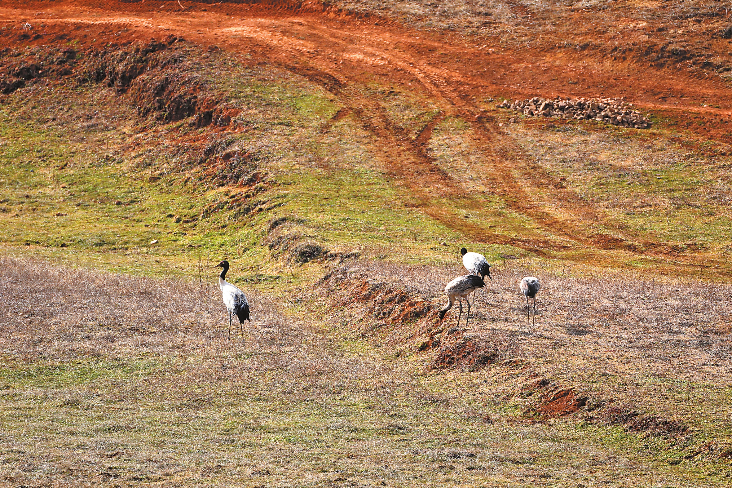 为迎接黑颈鹤的到来,保护区不仅播种了黑颈鹤喜食的荞麦、洋芋、萝卜等作物50余亩,在大白龙、羊塘等海子投放本地鱼苗11万尾,准备了3吨玉米,还将加强值班值守,劝返徒步打卡游玩人员,最大限度减少对黑颈鹤等野生动物的惊扰和对栖息地的损害。