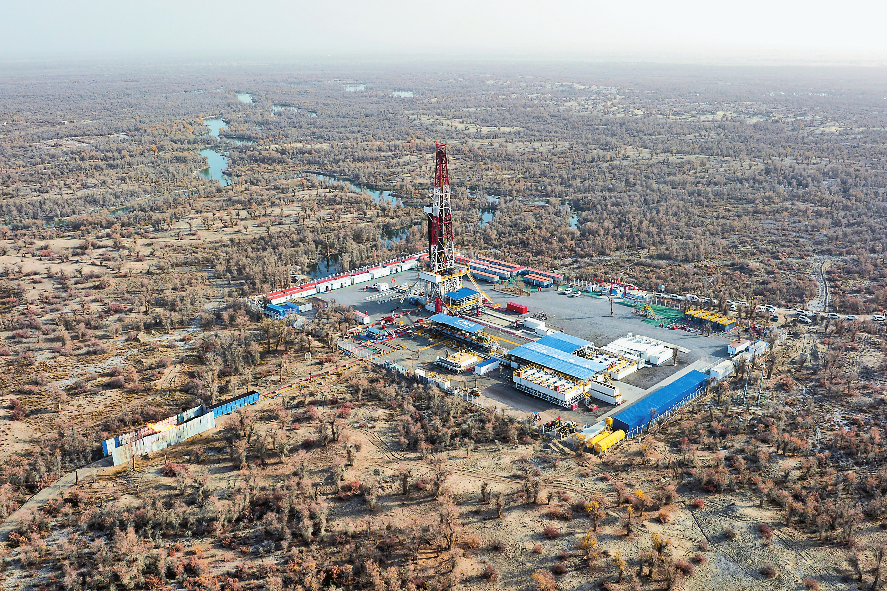 郭旭升说,跃进3-3XC井地处塔里木河上游湿地自然保护区的红线之外,但开采的油气却来自数公里之外的保护区下方7200多米处的超深层。西北油田创新运用超深大位移技术,在地层下水平延伸3400米后获得丰富的油气资源。同时,想要在“又深又黑”的地下,通过大位移水平井准确找到油气,还必须给钻头装上“眼睛”。西北油田采用超深高温高效定向技术,利用高精度随钻测控系统将垂深7000米以下信号实时传输至地面,让钻头犹如长了“眼睛”,随时调整钻头行进轨迹。