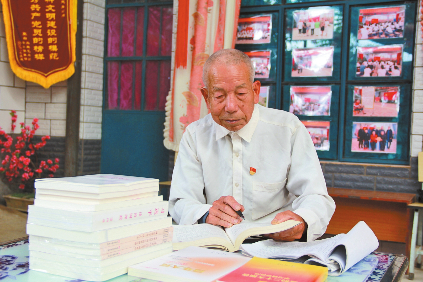 1995年,张建生从工作岗位退下来后,回家发展花卉、石榴、枇杷等种植业。“有了稳定收入,就想做点有价值的事。”张建生决定把自己家打造成“红色阵地”,更好地向群众宣传党的路线方针政策,为邻里乡亲打造一个精神家园。